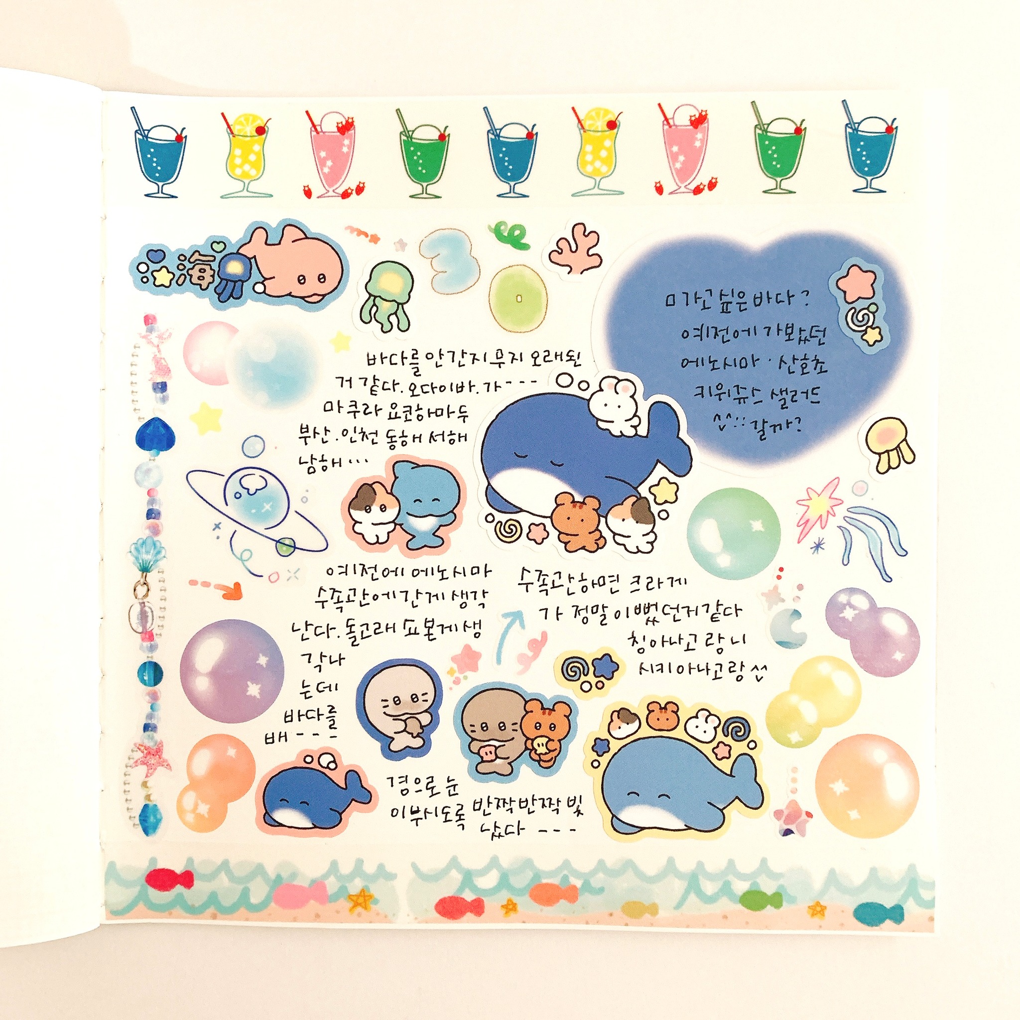 [韓国デコ日記]シールでデコ日記!夏の思い出その2【ユング】クジラと海