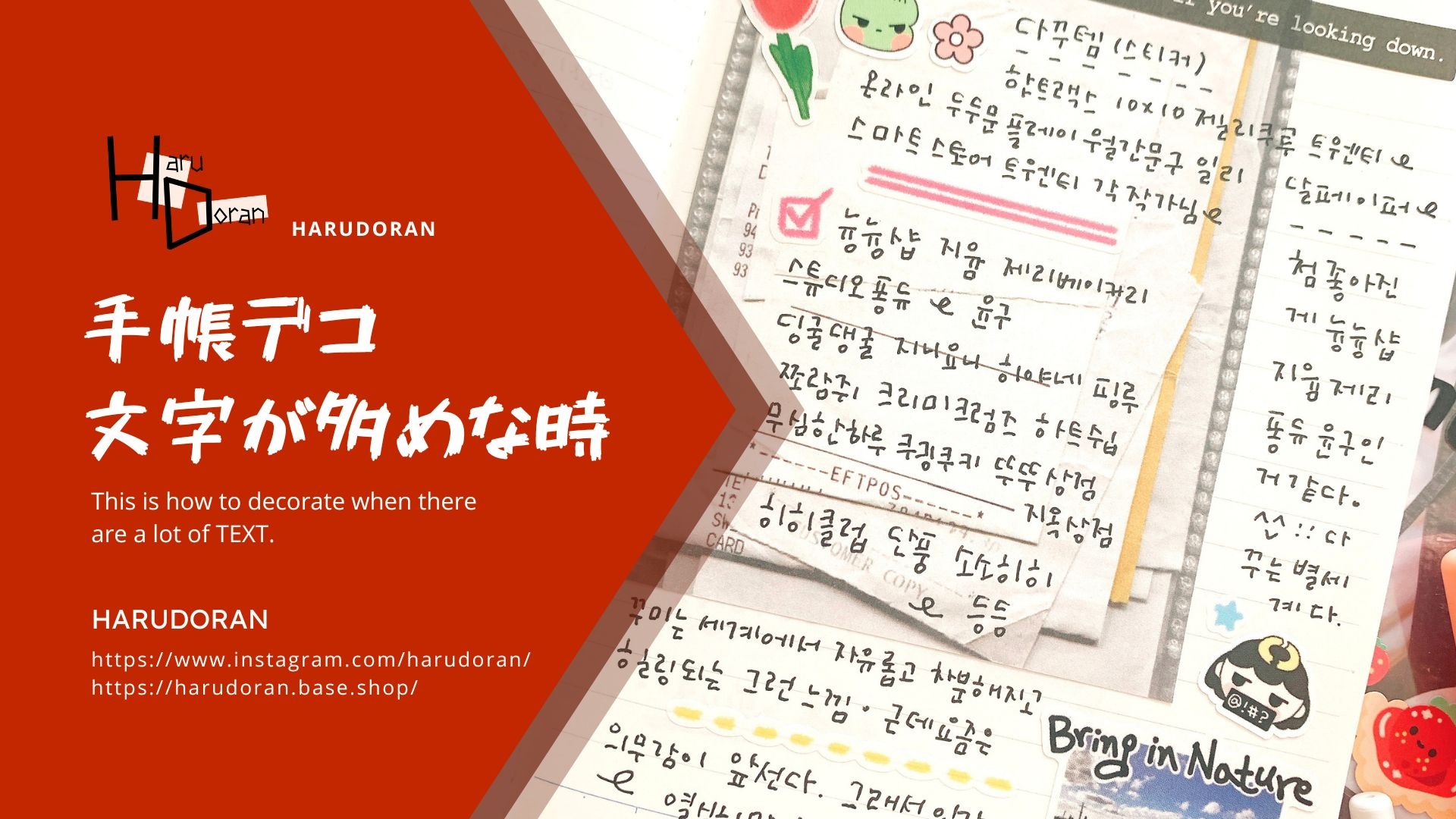 文字が多めな時の手帳デコ術!HARUDORANが提案します!ちょこっと貼るだけで華やかに!