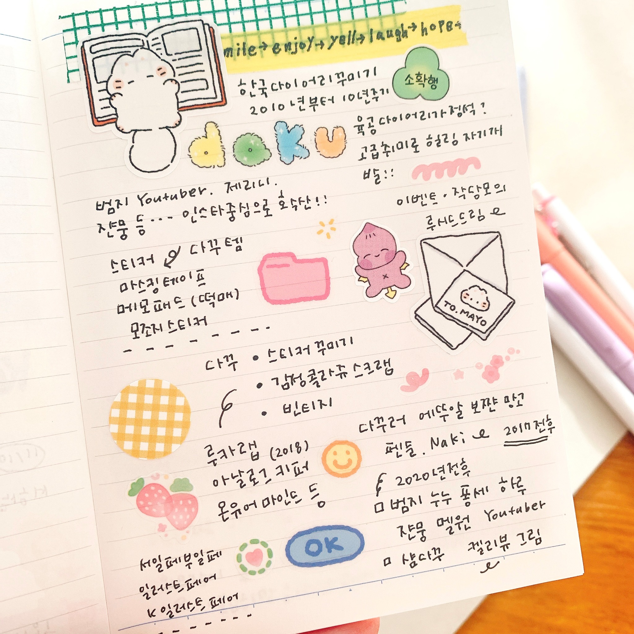 韓国で手帳関連やデコ関連を調べたものをまとめるノートにしました。