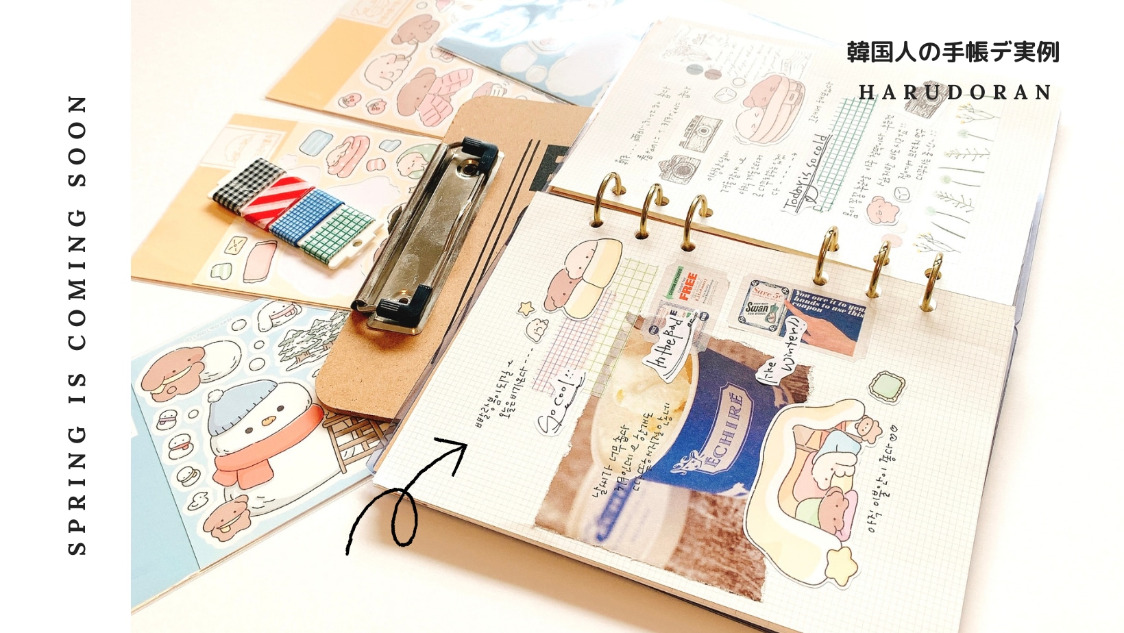 【手帳デコの実例】韓国人の手帳デコ、可愛いウサギのキャラクターをうまくポイントに