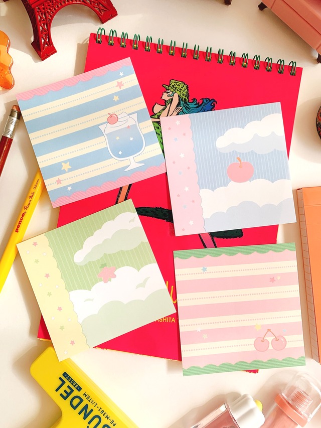韓国作家、韓国シール【ポラン】夏がくる、 手帳デコ、イラスト作家、ハンドメイド文房具、オリジナルシール 韓国シールのお店「HARUDORAN」ショップの新商品です。 韓国作家さん【ポラン】の新商品です。 可愛い少女のイラストが特徴です。 韓国で流行りのアニメスタイルのイラストをふんだんに取り入れて、 とてもかわいいです。愛らしい表情や流行りの可愛い洋服、漫画から飛び出たような ポランさんの世界にようこそ。流行りの韓国手帳の仕上がりです。 模造紙シールだけどそれぞれ切り目が入ってとてもかわいい 流行りのリンゴも星が入ってとてもかわいい。最高のプレゼントになりそう。 ●H1108 模造紙シール4枚セット ●材質:模造紙シール(切り目あり) ●サイズ: ●使い方:手帳コラージュ、日記、スマホやタブレット、プレゼントの包装にポイント、 お手紙など ※使い方はinstagramにて公開予定です。 https://www.instagram.com/harudoran/ ※ハルドランの商品関連はブログにてご確認ください。 https://harudoran.base.shop/blog