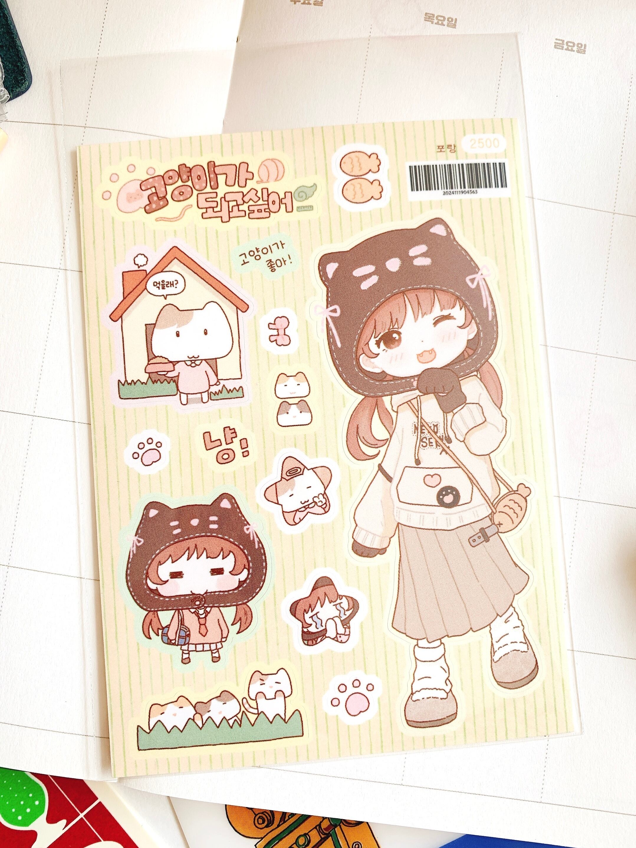 韓国作家、韓国シール【ポラン】ネコになりたい、 手帳デコ、イラスト作家、ハンドメイド文房具、オリジナルシール
