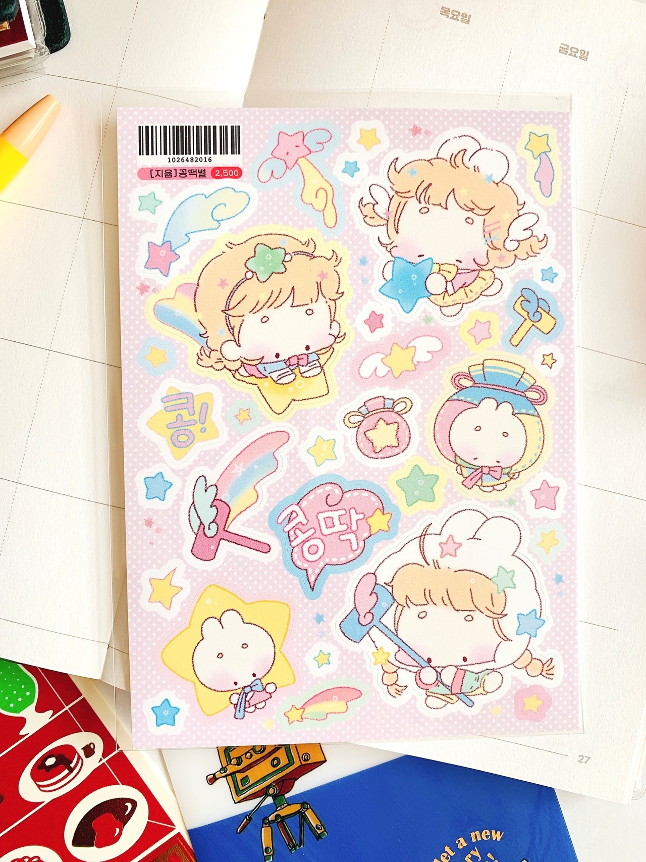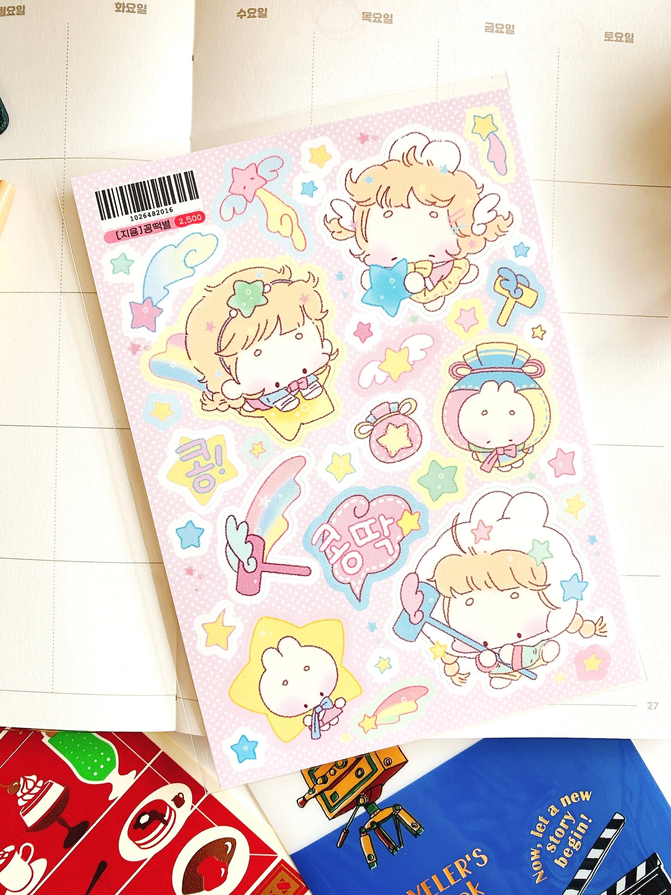 韓国作家、韓国シール【ジユム】豆もちの星、 手帳デコ、イラスト作家、ハンドメイド文房具、オリジナルシール