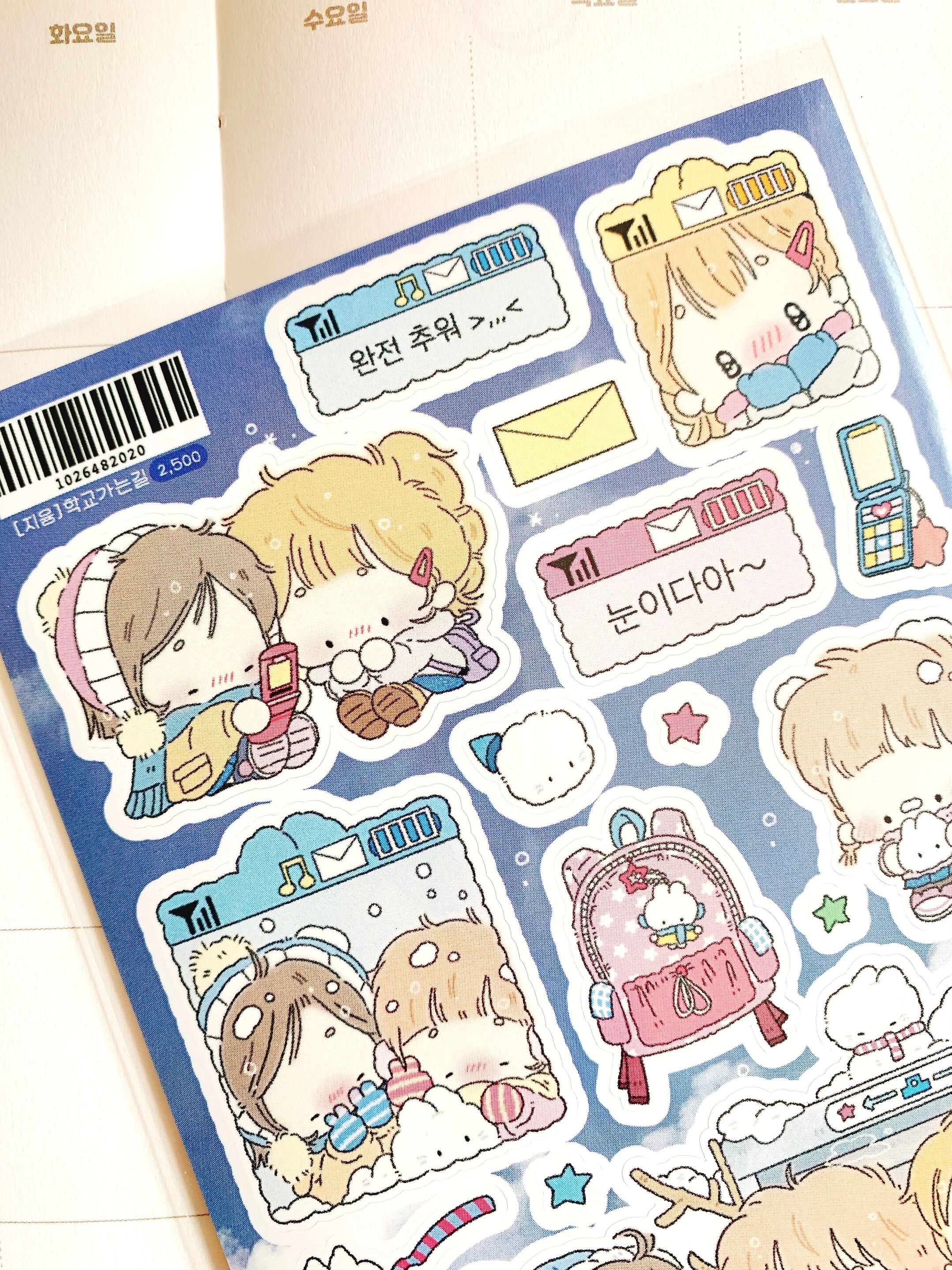 韓国作家、韓国シール【ジユム】学校へいく道、 手帳デコ、イラスト作家、ハンドメイド文房具、オリジナルシール