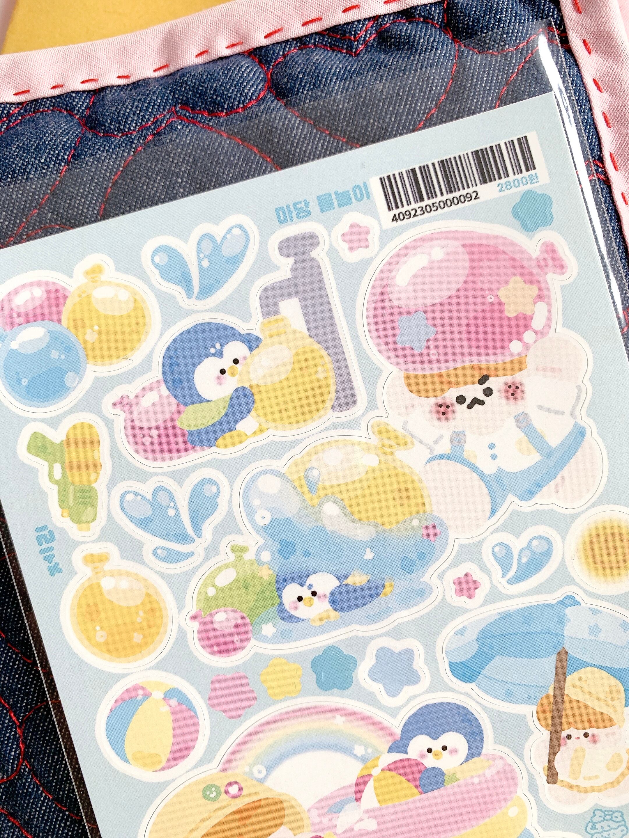 韓国作家、韓国シール【ジェリーベーカリー】お庭の水遊び 手帳デコ、推し活、ハンドメイド、イラスト、可愛い韓国系
