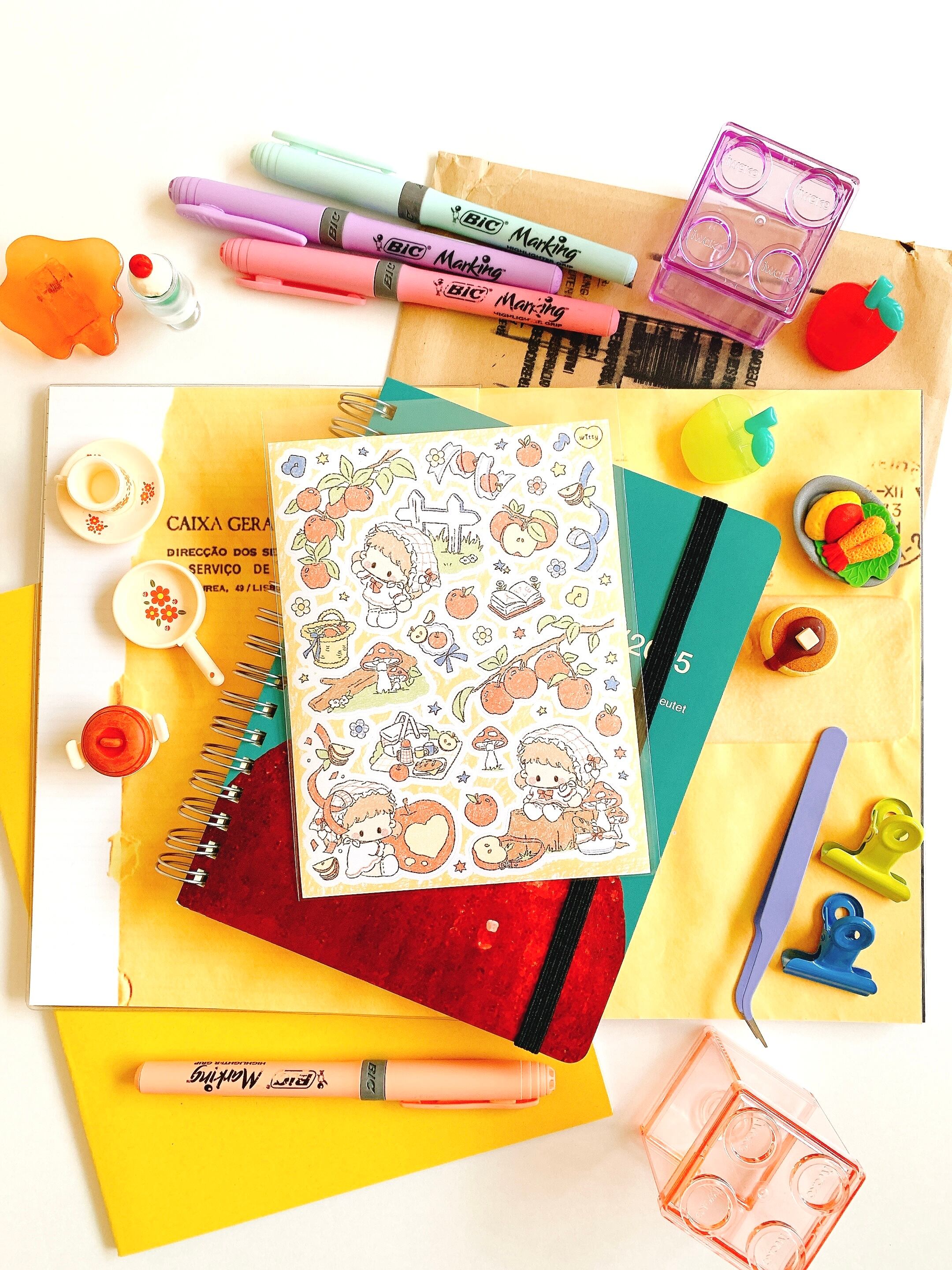 韓国作家、韓国シール【タンチュ】森の中のりんご、 手帳デコ、推し活、ハンドメイド、イラスト、可愛い韓国系