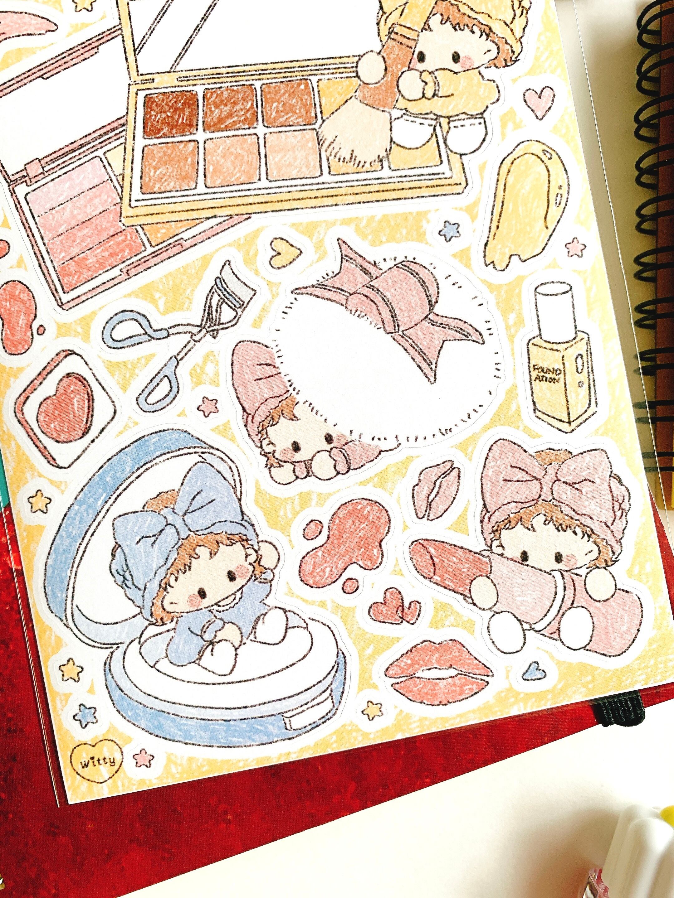 韓国作家、韓国シール【タンチュ】メイクアップ、 手帳デコ、推し活、ハンドメイド、イラスト、可愛い韓国系