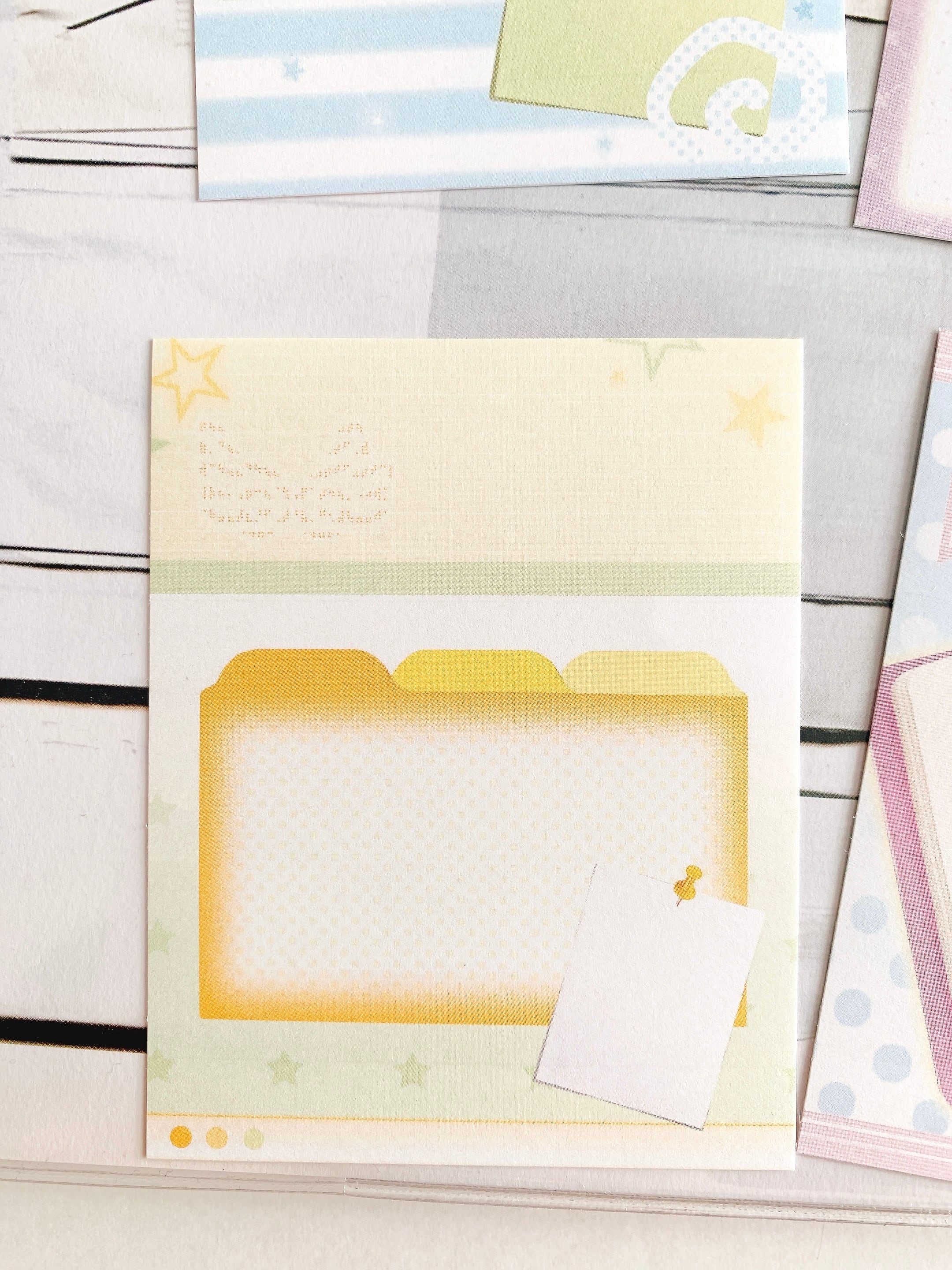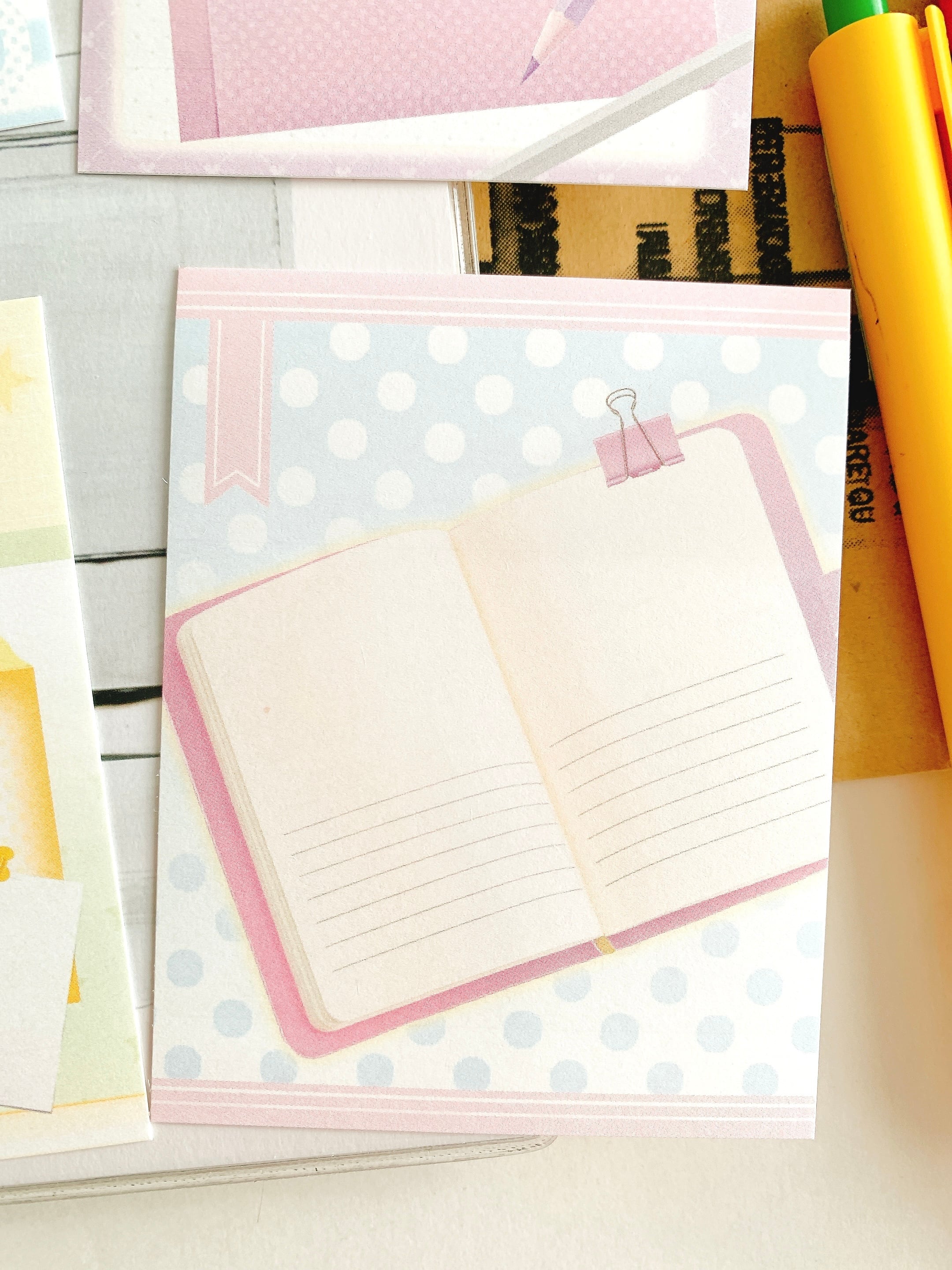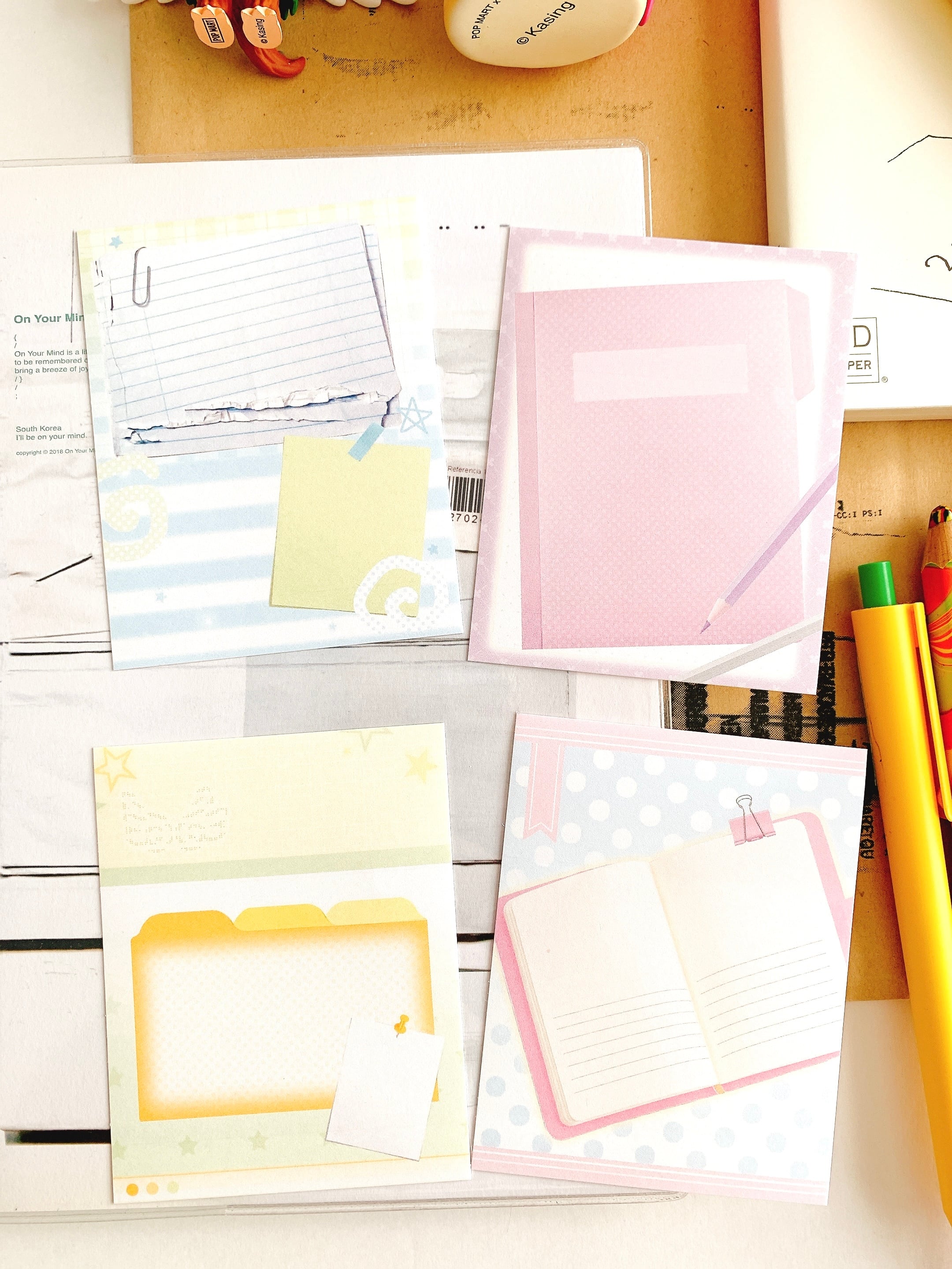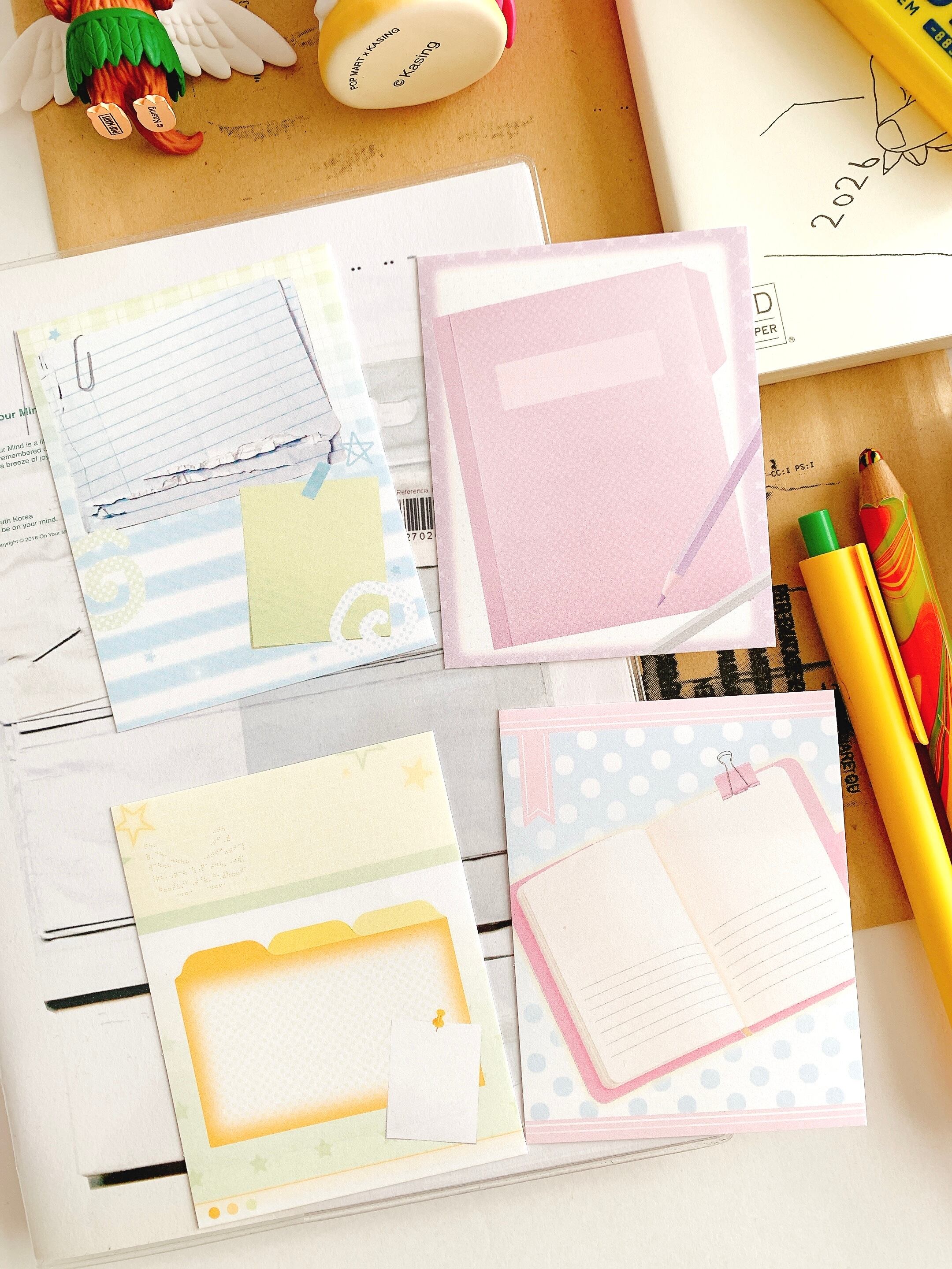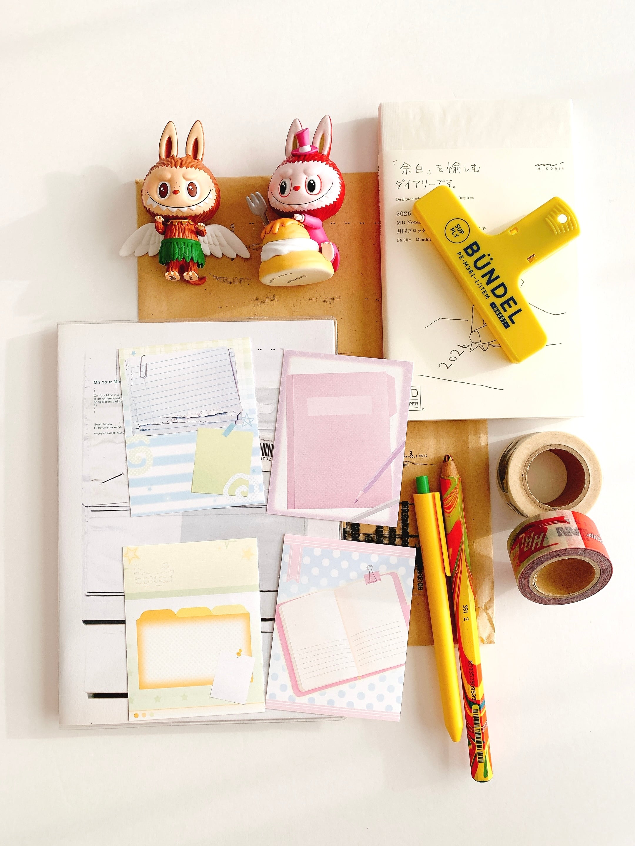 クリップつけたメモやファイル、ノートとか、書類ファイルなど