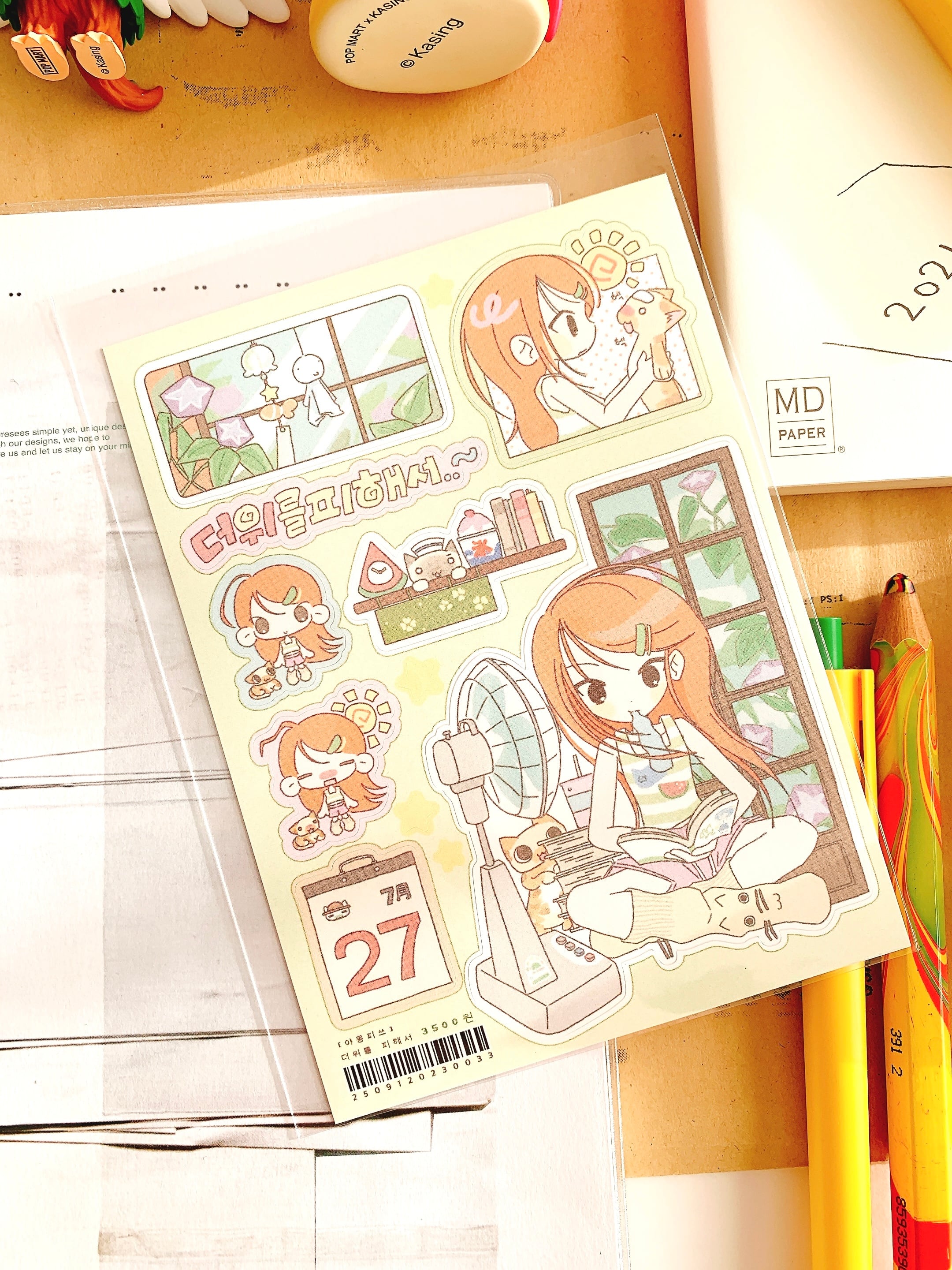 韓国作家、韓国シール【ヤオンピース】暑さをしのぐために、