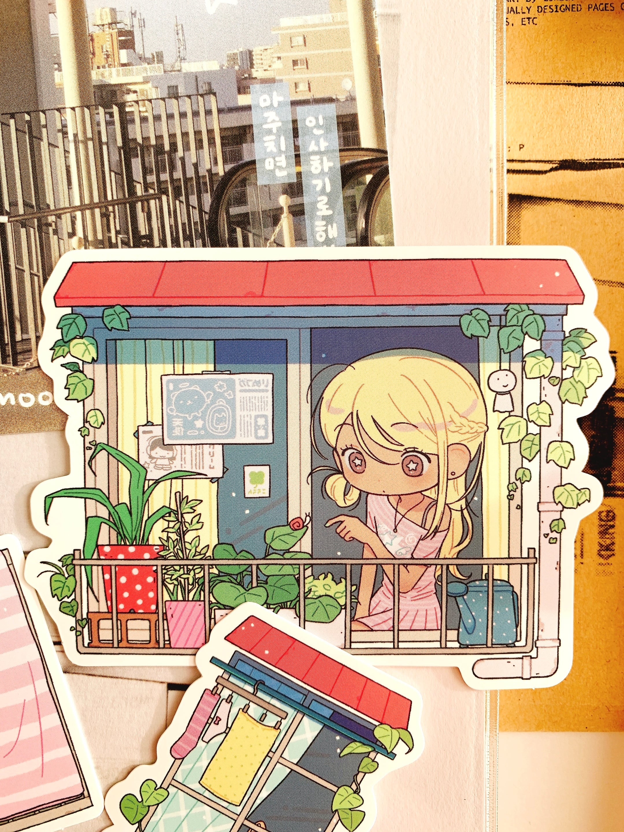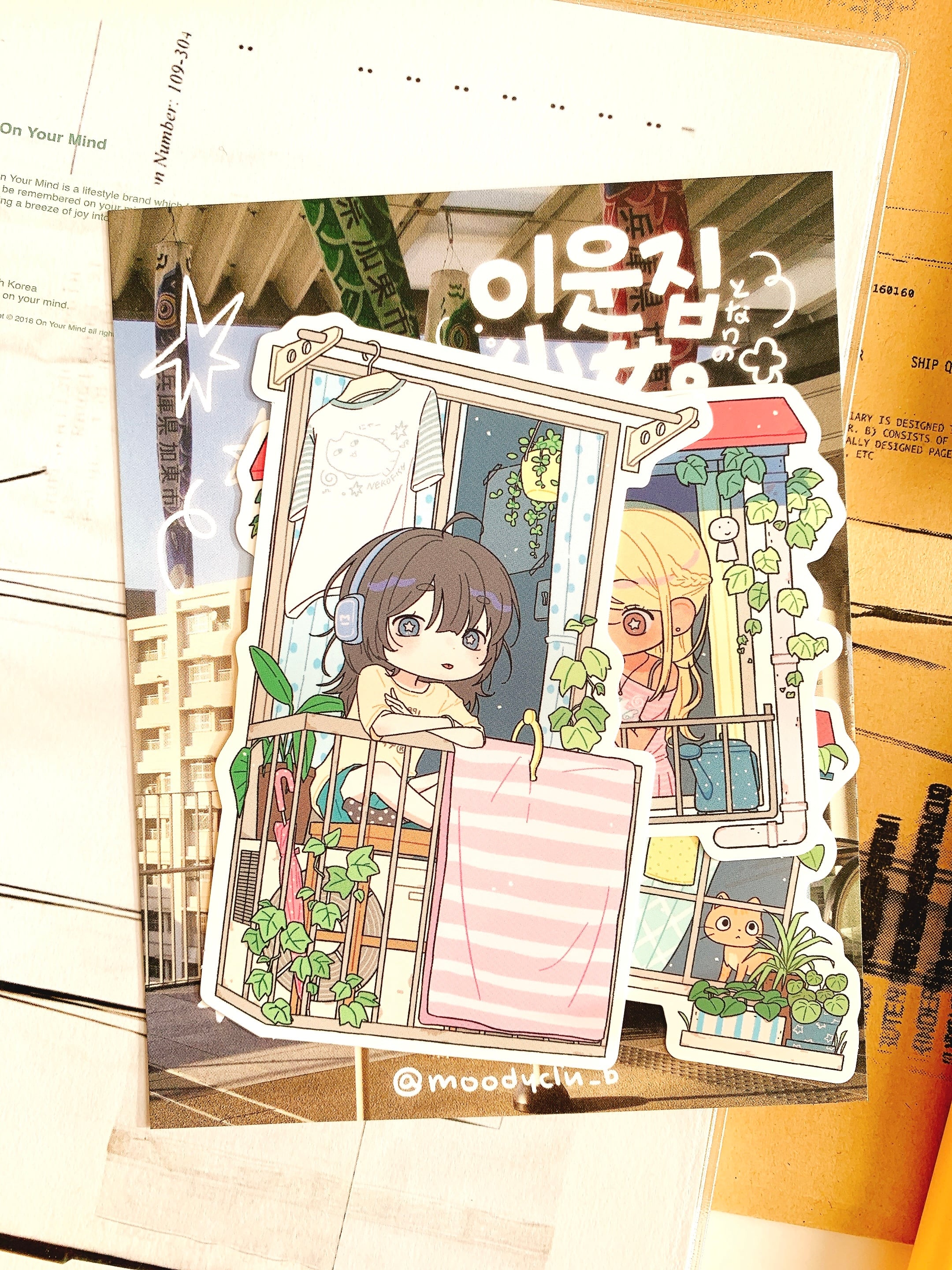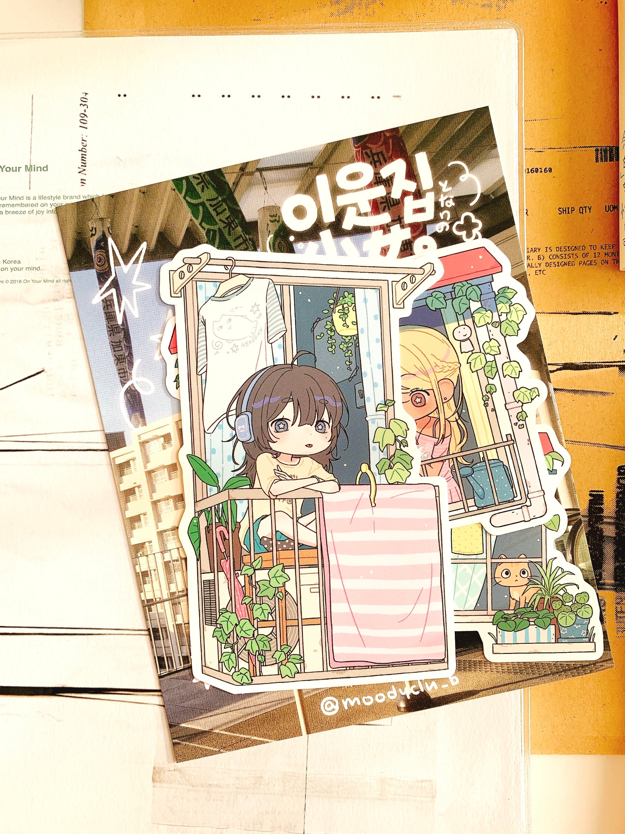 韓国作家、韓国シール【ムーディークラブ】お隣の少女の夕方、 手帳デコ、推し活、ハンドメイド、イラスト、可愛い韓国系