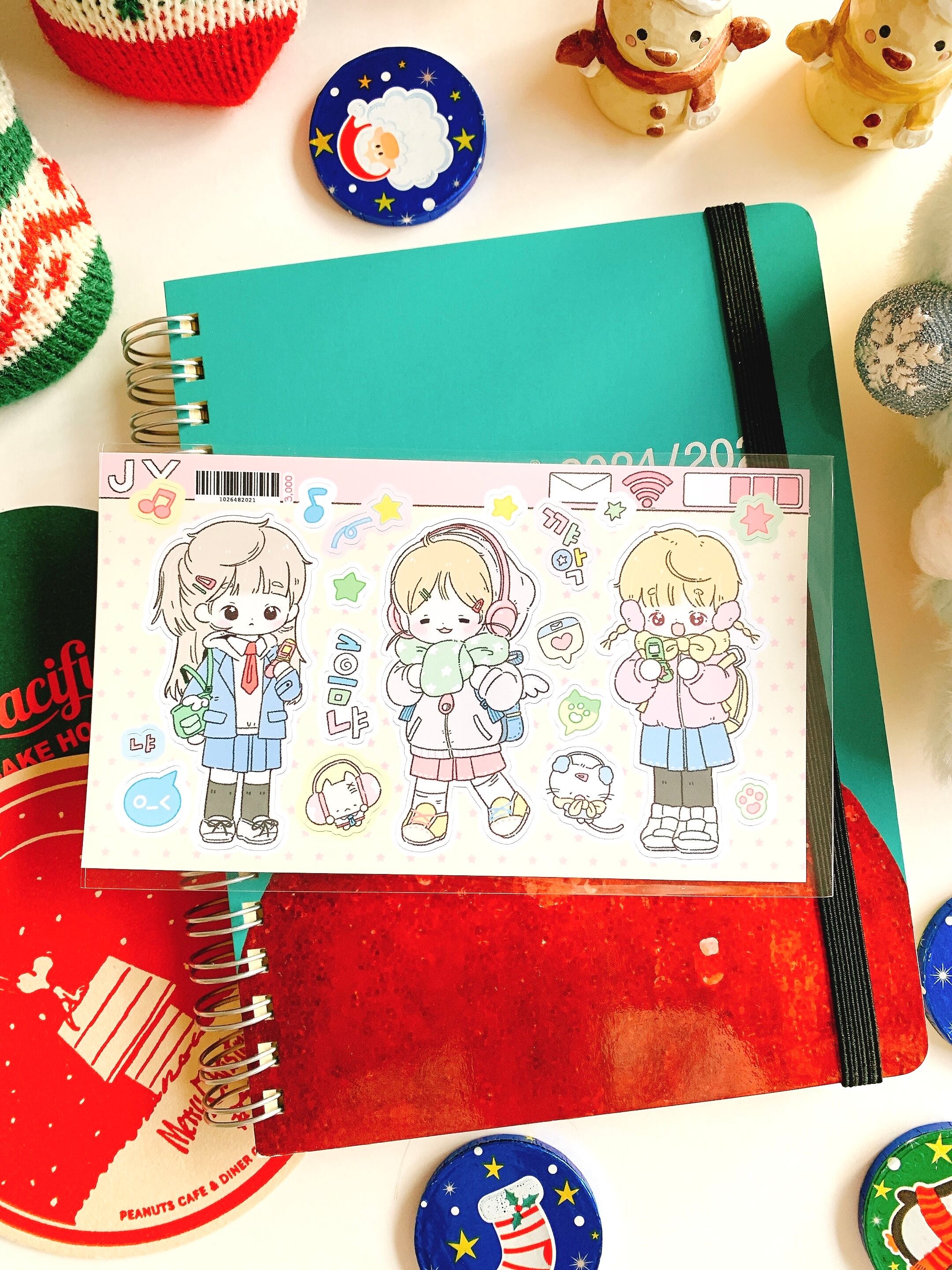 韓国作家、韓国シール【ジユム】スクールガール、 手帳デコ、推し活、ハンドメイド、イラスト、可愛い韓国系