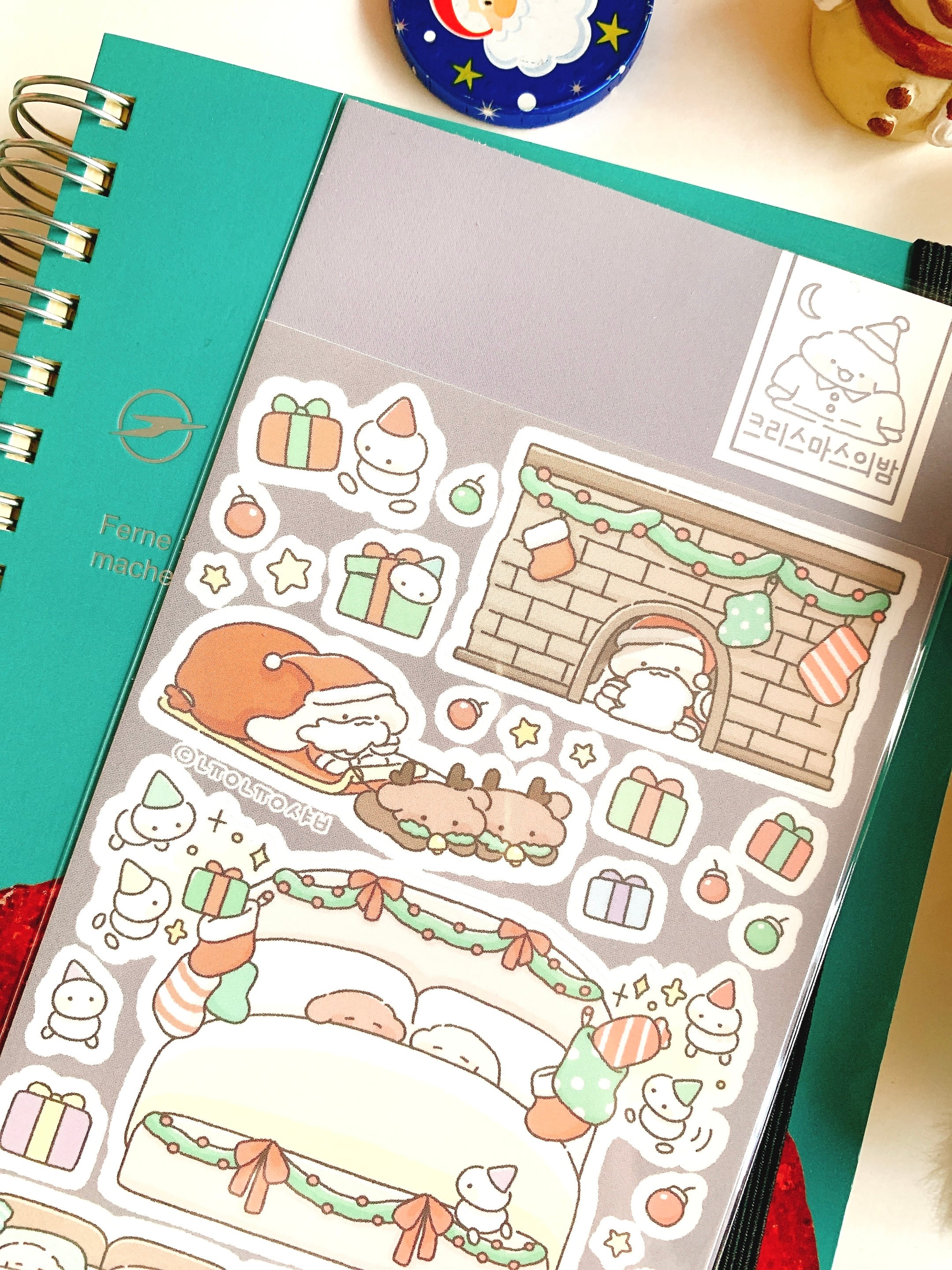 韓国作家、韓国シール【ニュンニュンショップ】クリスマスの夜、 手帳デコ、推し活、ハンドメイド、イラスト、可愛い韓国系