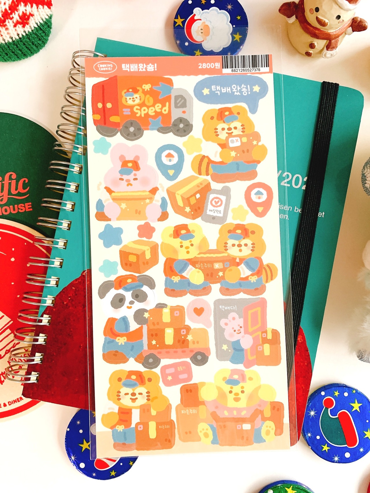 韓国作家、韓国シール【クッキングクッキー】荷物が届くよ、 手帳デコ、推し活、ハンドメイド、イラスト、可愛い韓国系