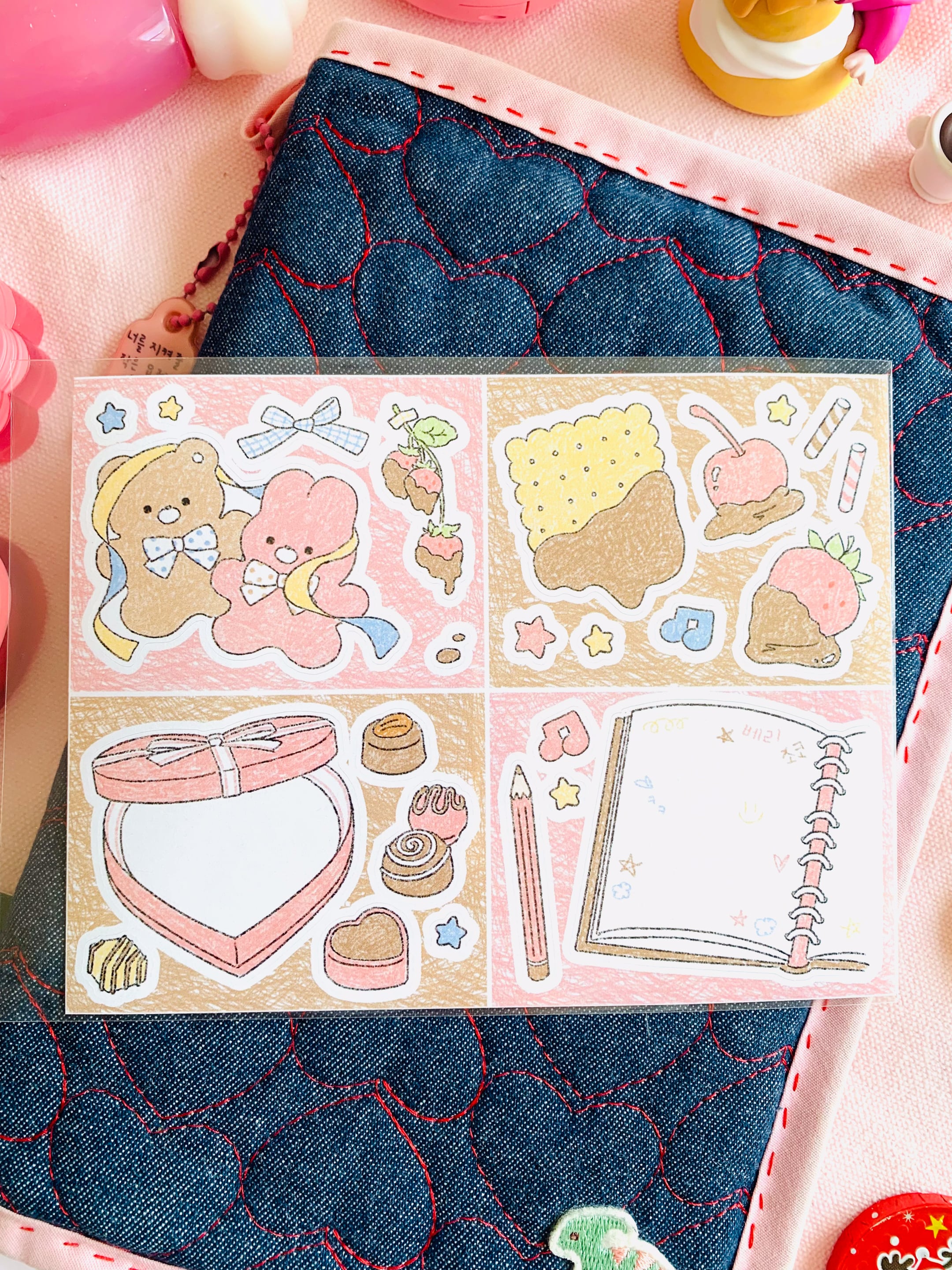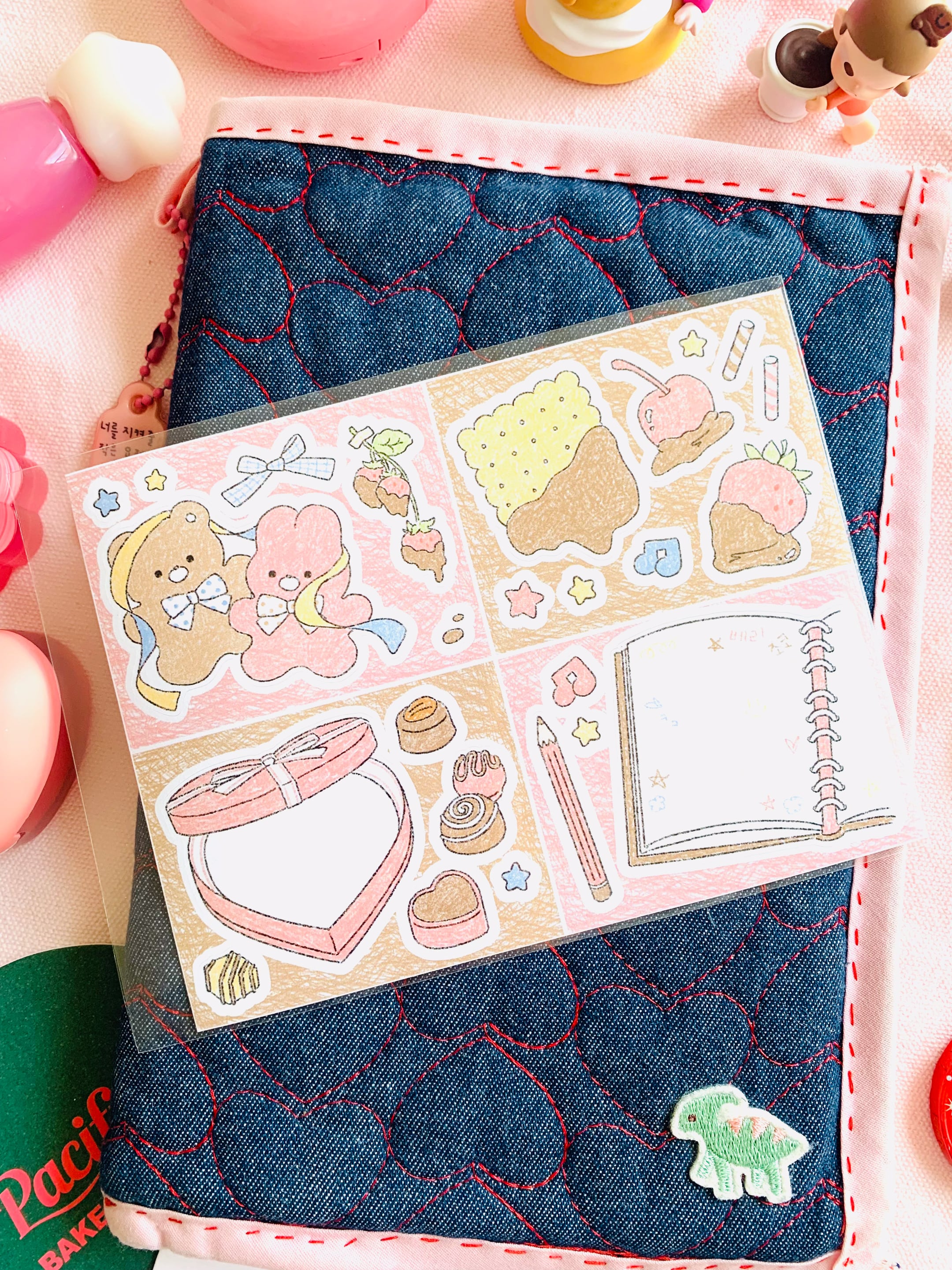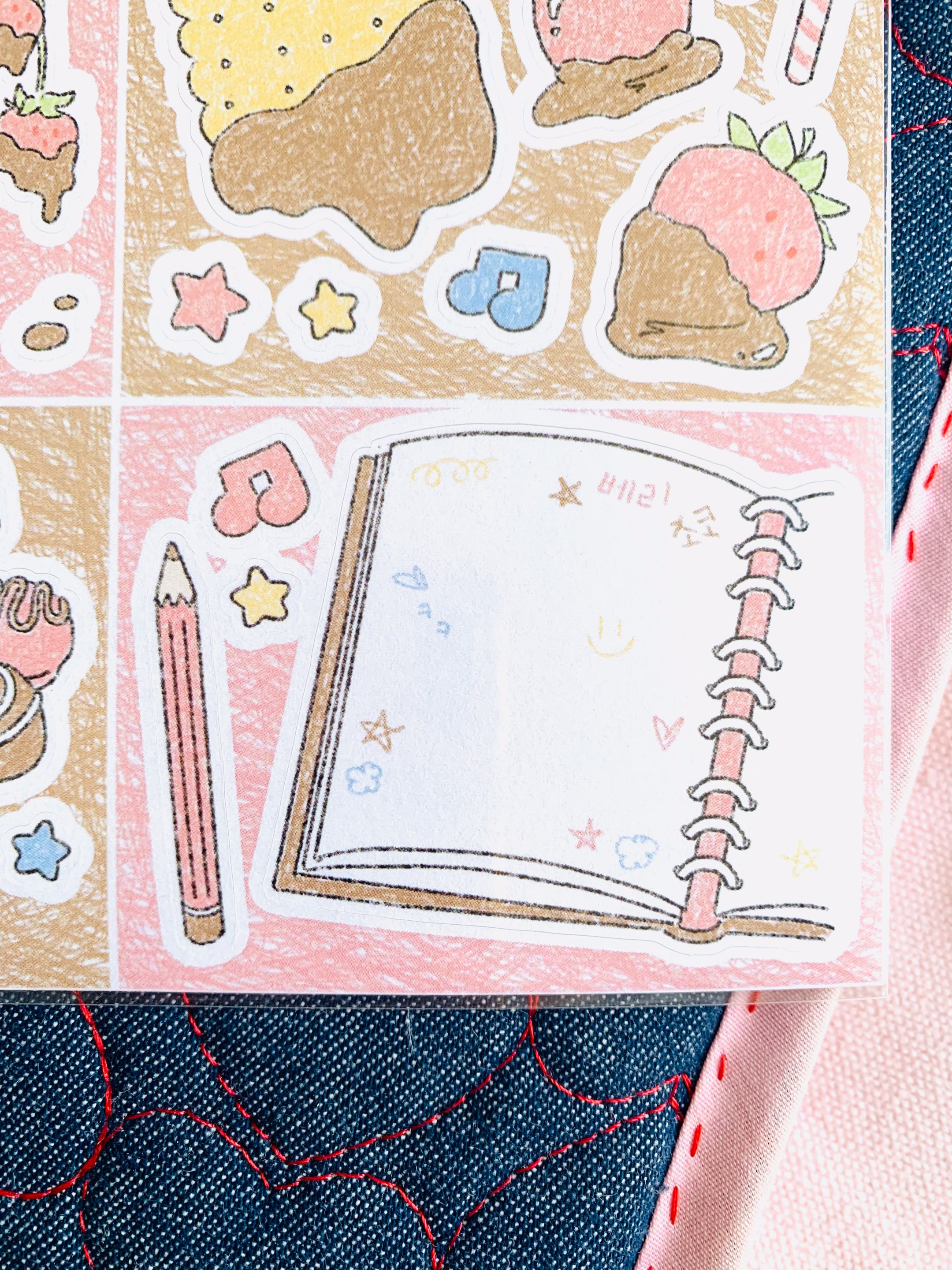 韓国作家、韓国シール【タンチュ】ベリーチョコ模造紙、 手帳デコ、推し活、ハンドメイド、イラスト、可愛い韓国系