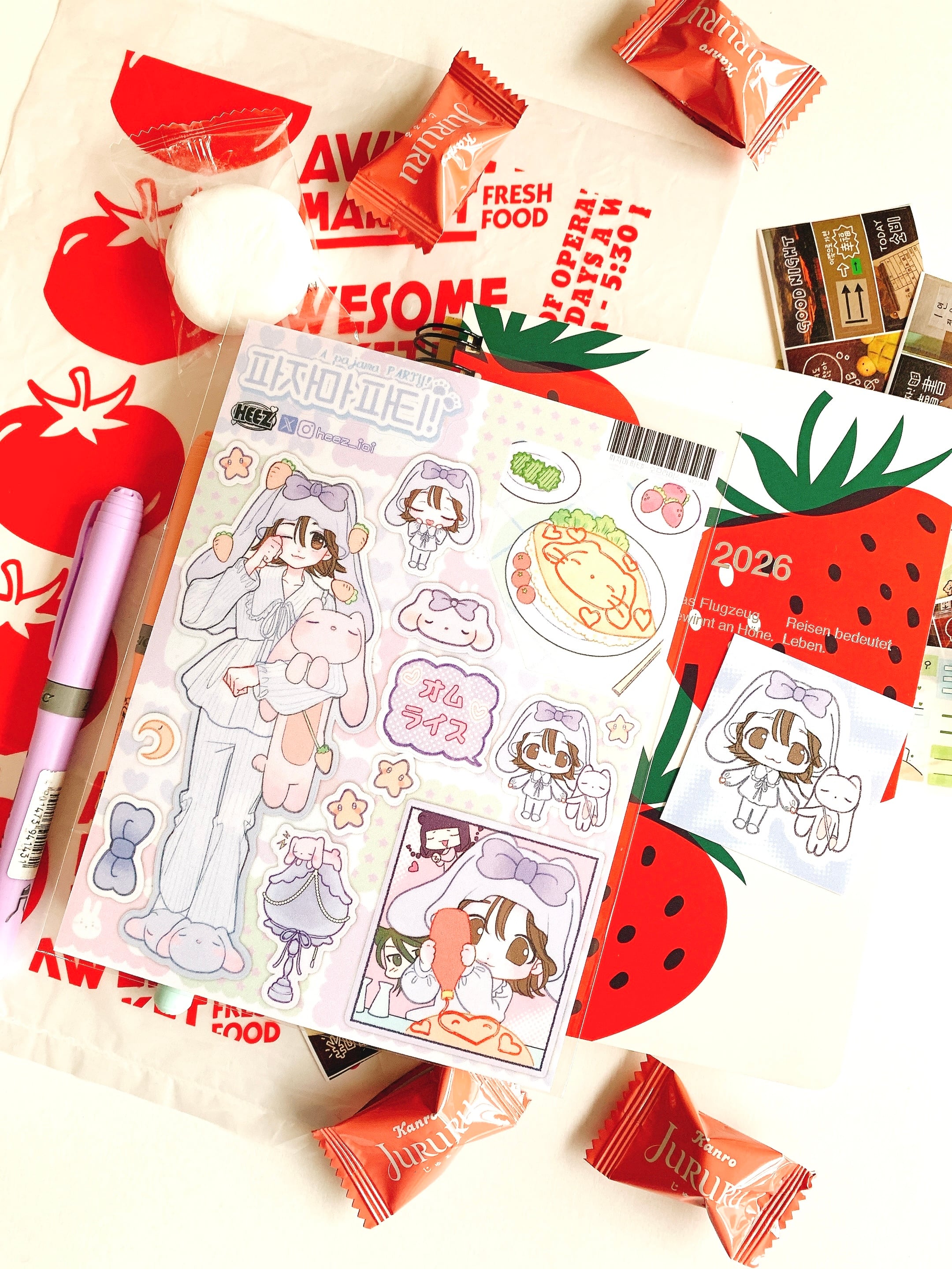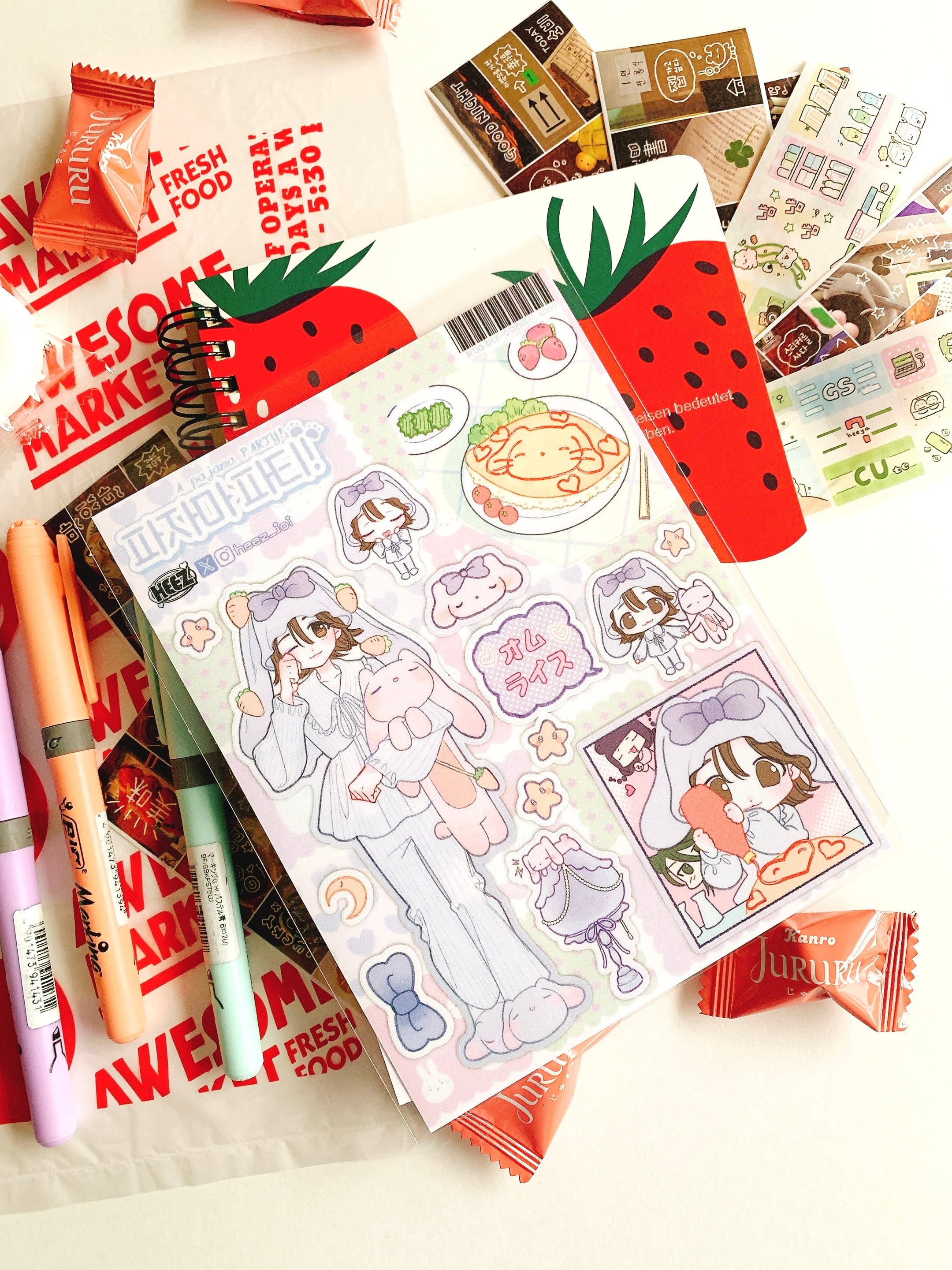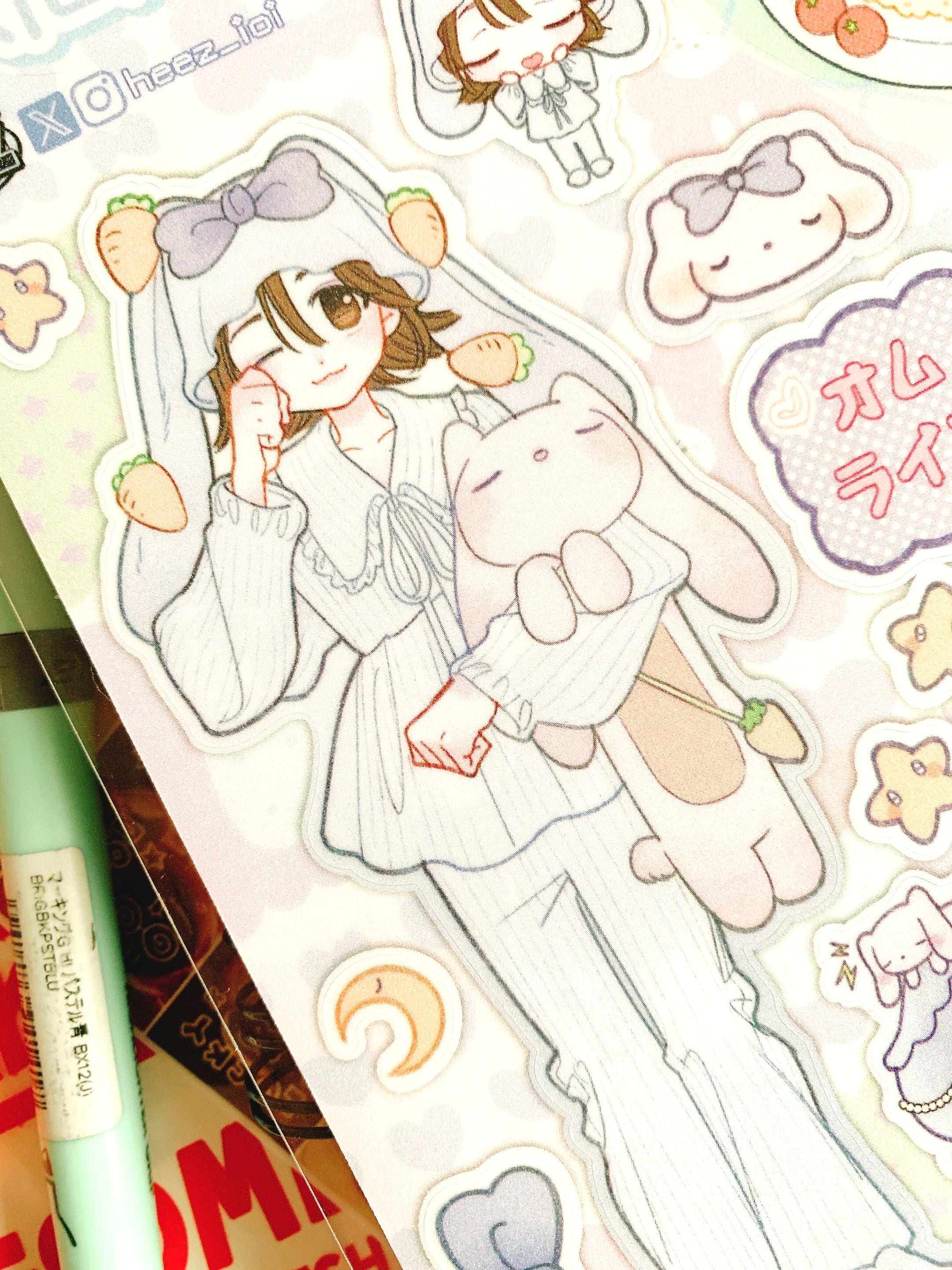 韓国作家、韓国シール【ヒーズ】パジャマパーティー、オムライス、 手帳デコ、推し活、ハンドメイド、イラスト、可愛い韓国系