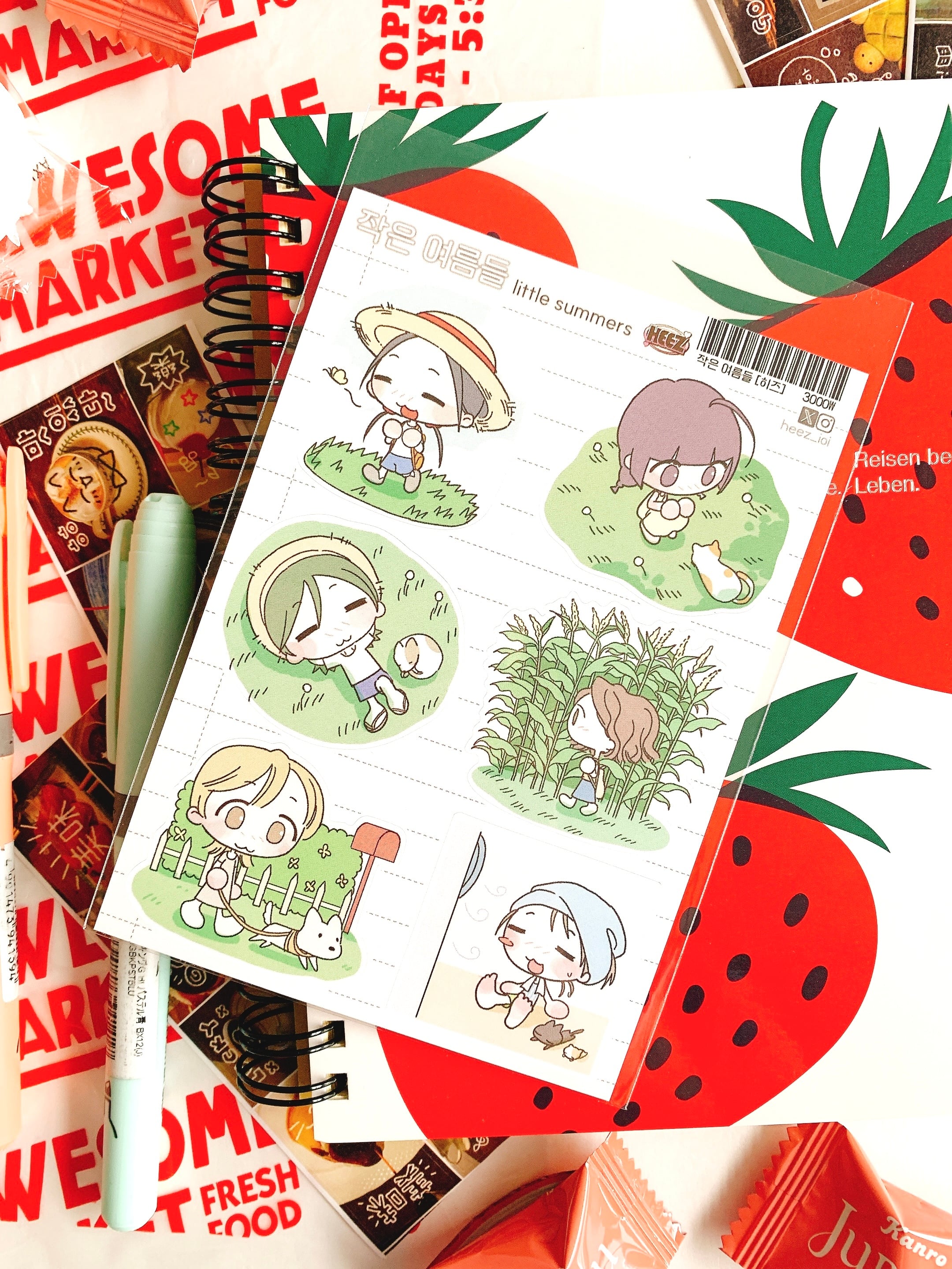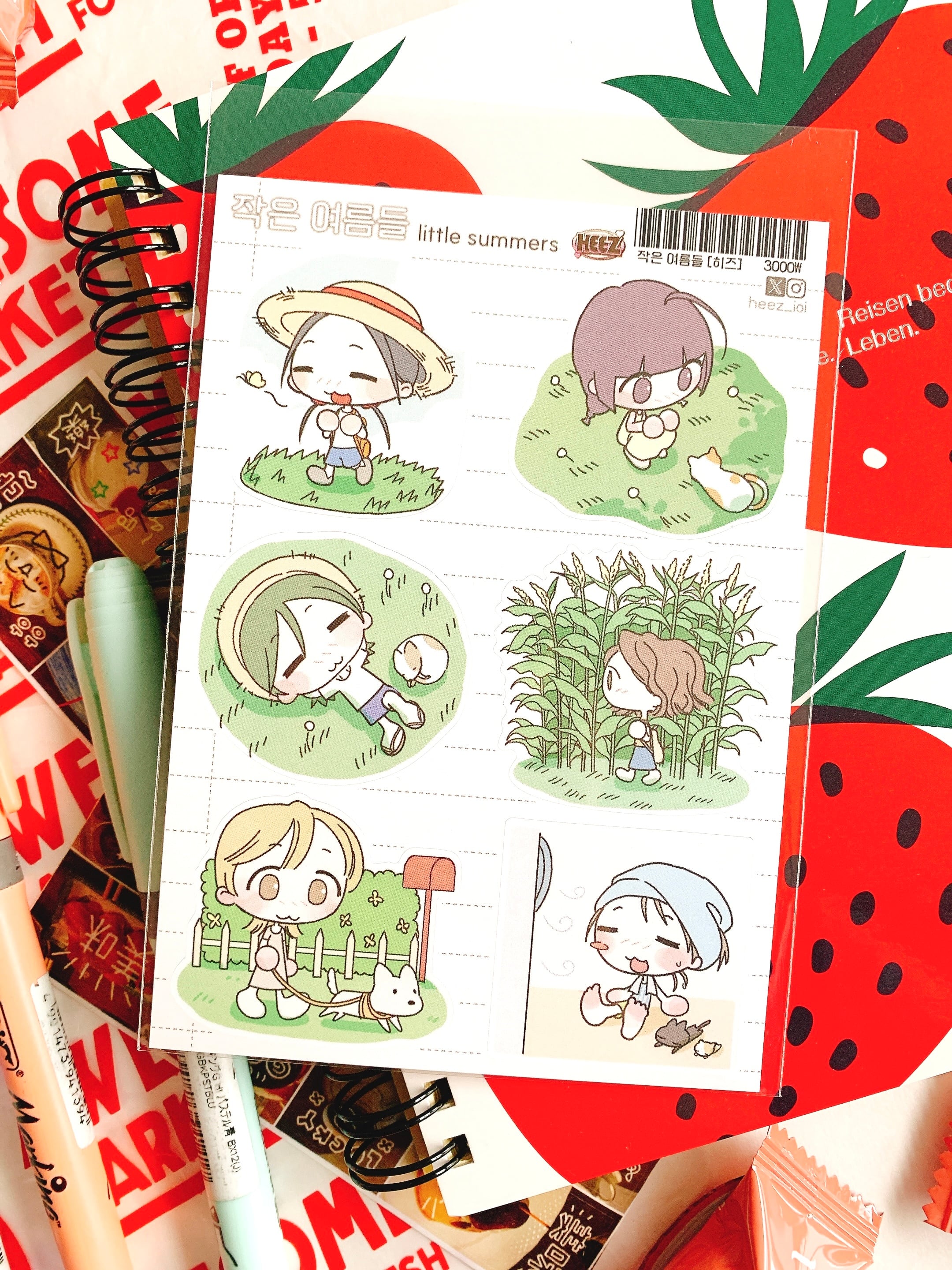 韓国作家、韓国シール【ヒーズ】小さな夏、 手帳デコ、推し活、ハンドメイド、イラスト、可愛い韓国系