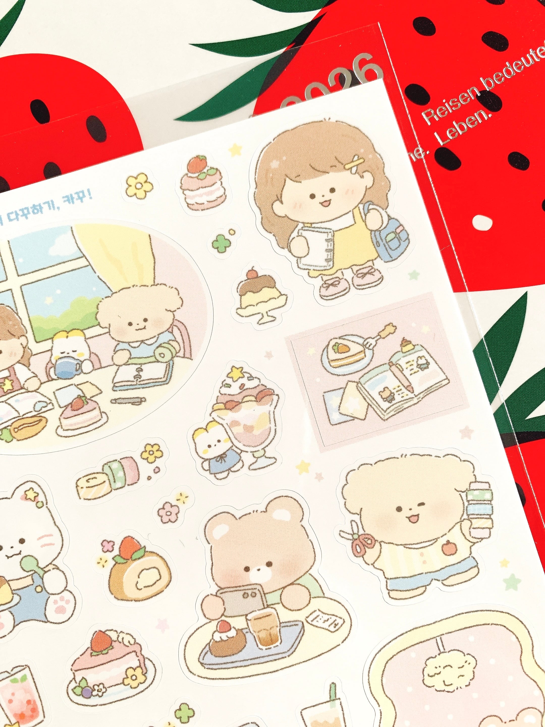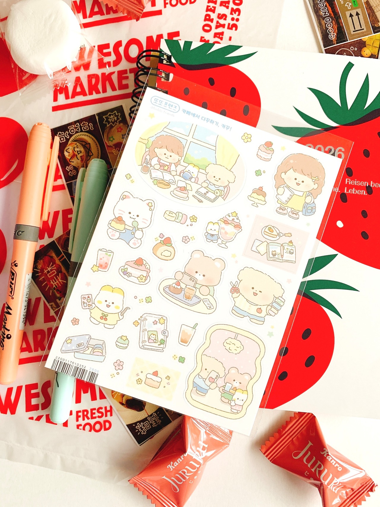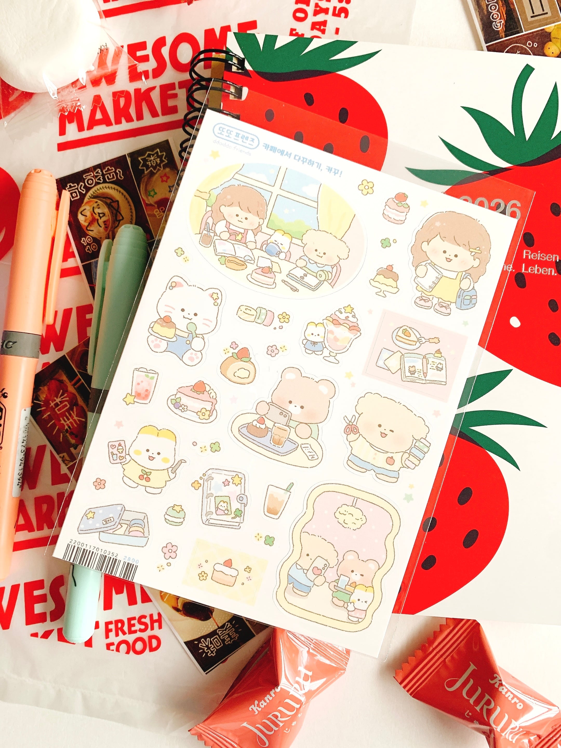 韓国作家、韓国シール【トトフレンズ】カフェで手帳デコ、カフェデコ、