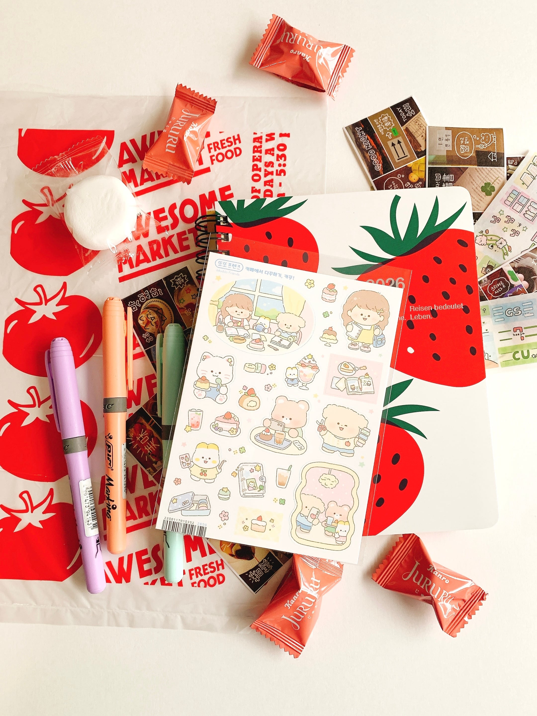 カフェで手帳デコは韓国人のならでは日常ですよ。