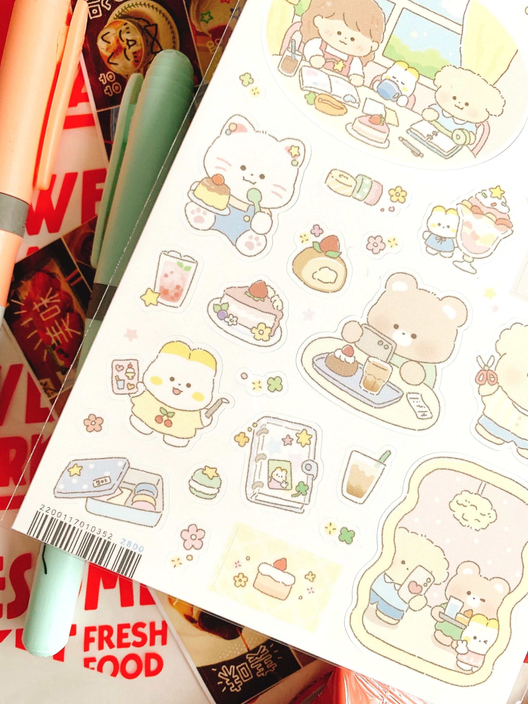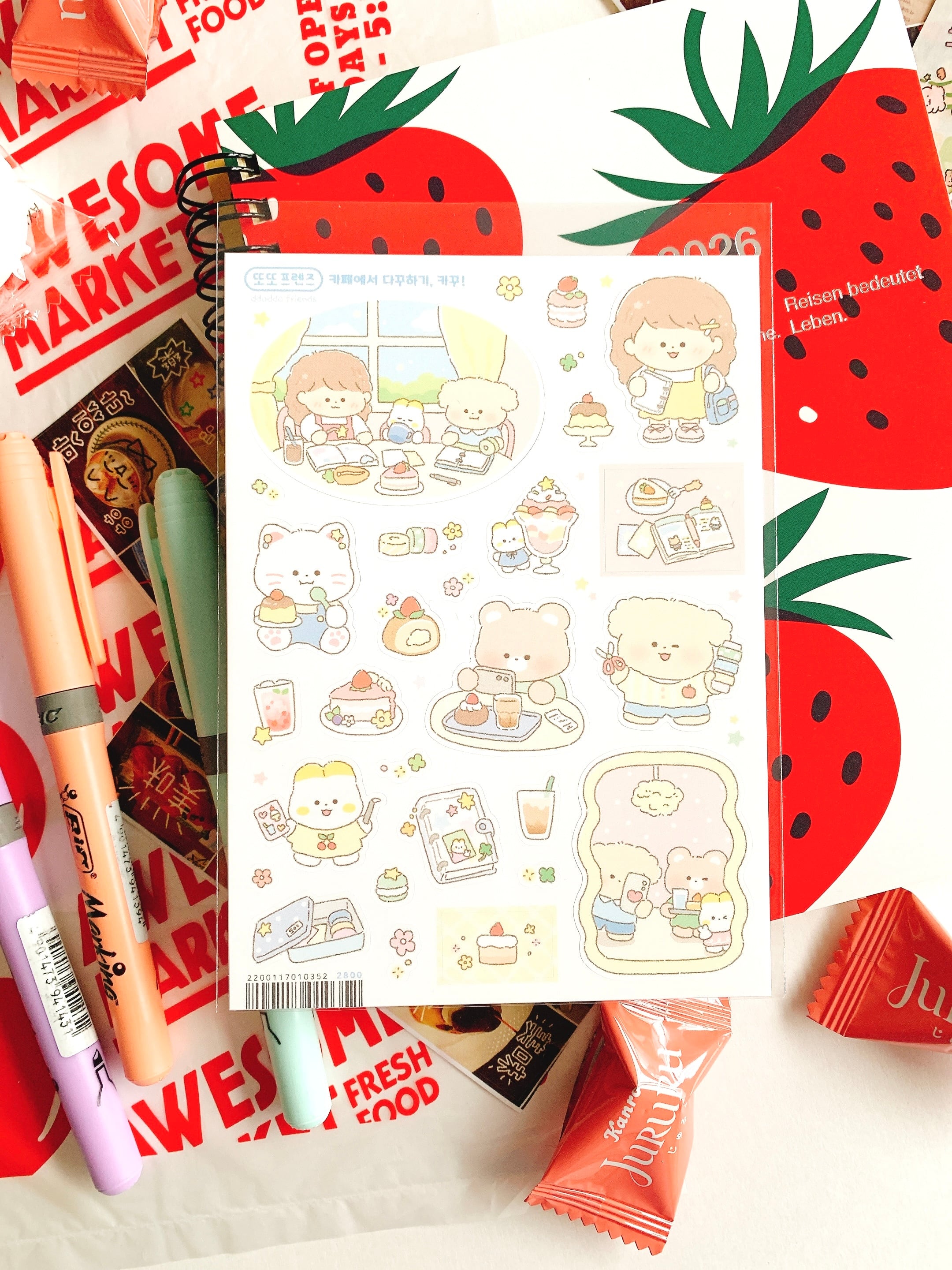 韓国作家、韓国シール【トトフレンズ】カフェで手帳デコ、カフェデコ、 手帳デコ、推し活、ハンドメイド、イラスト、可愛い韓国系