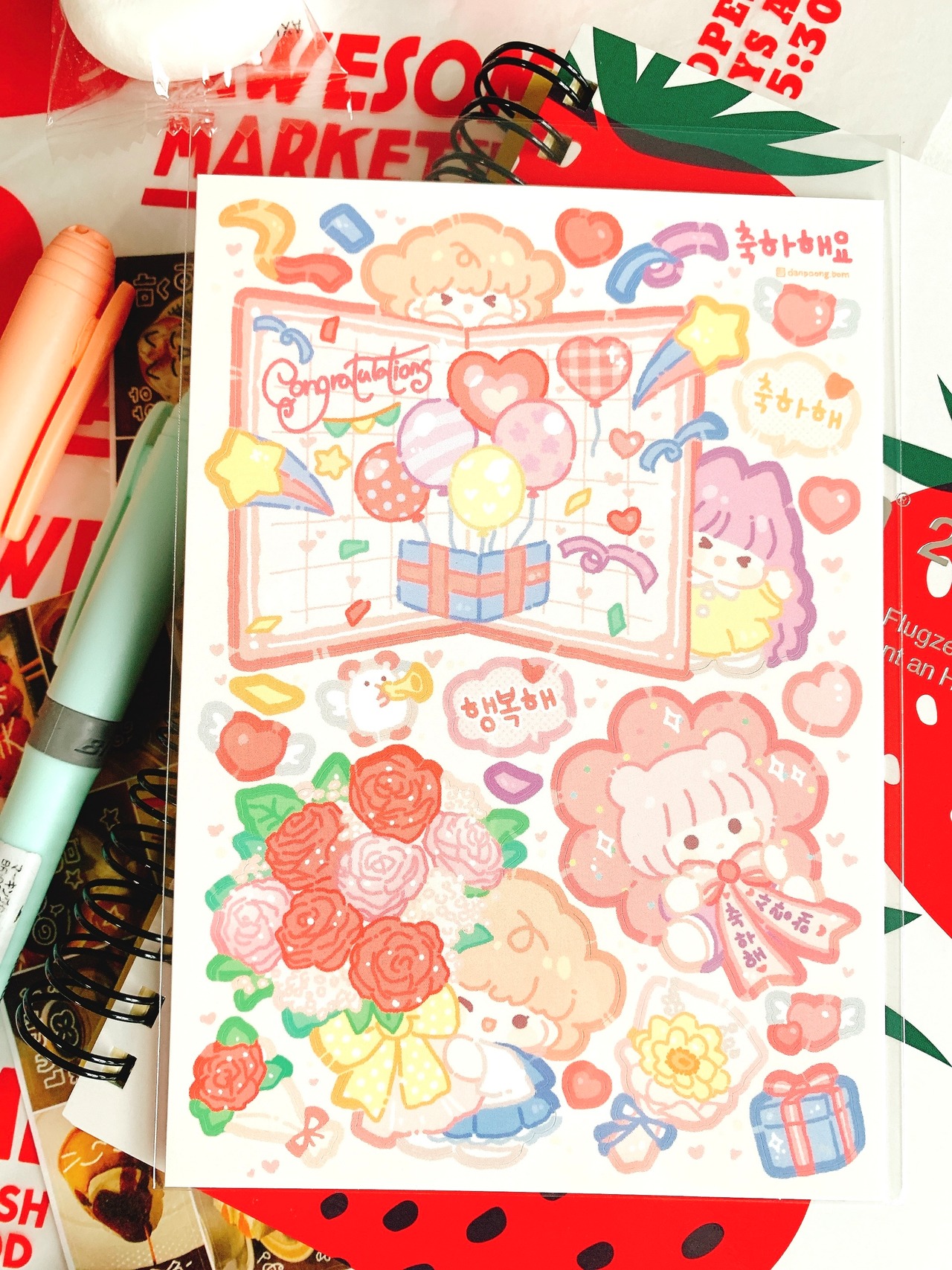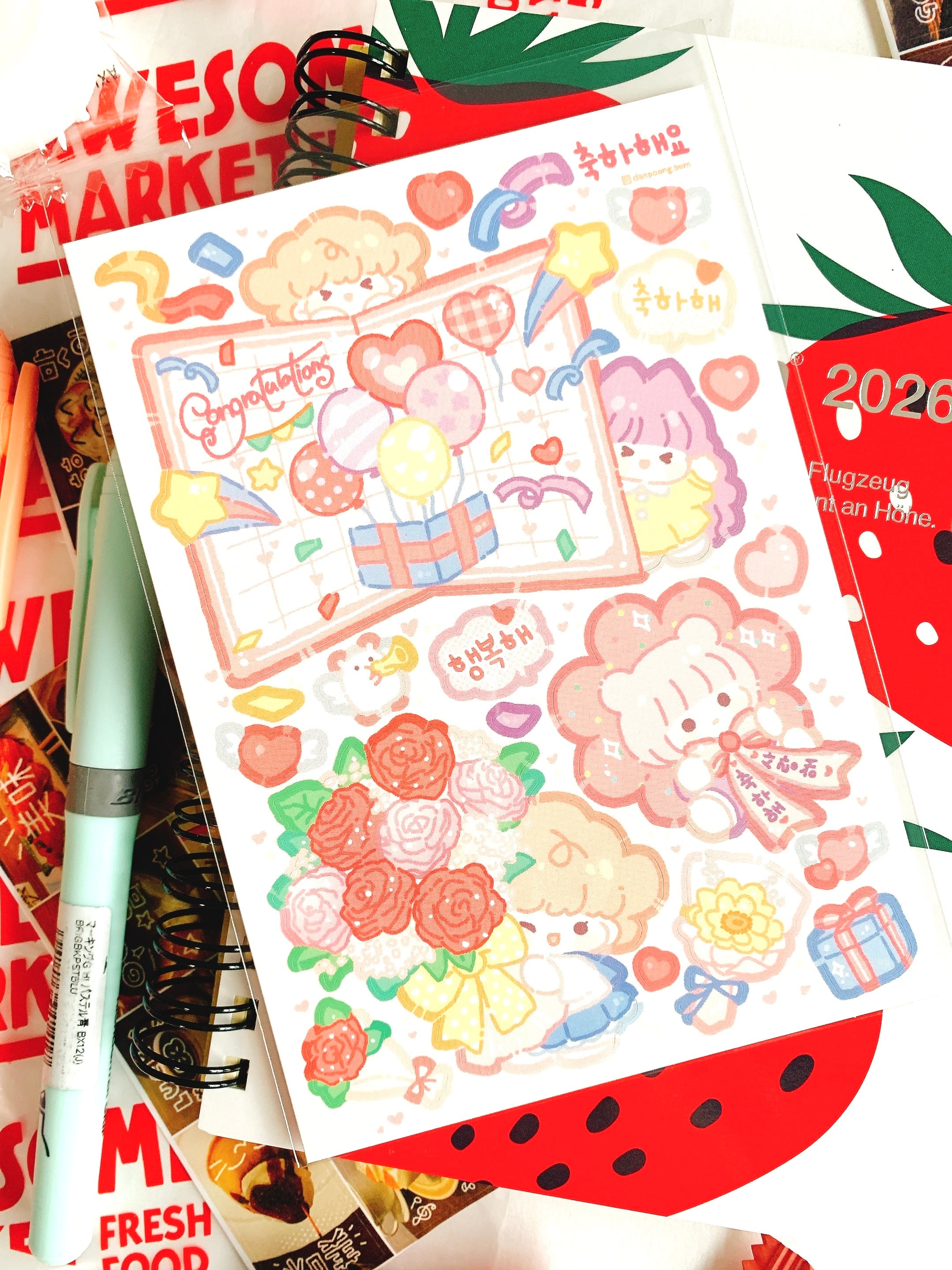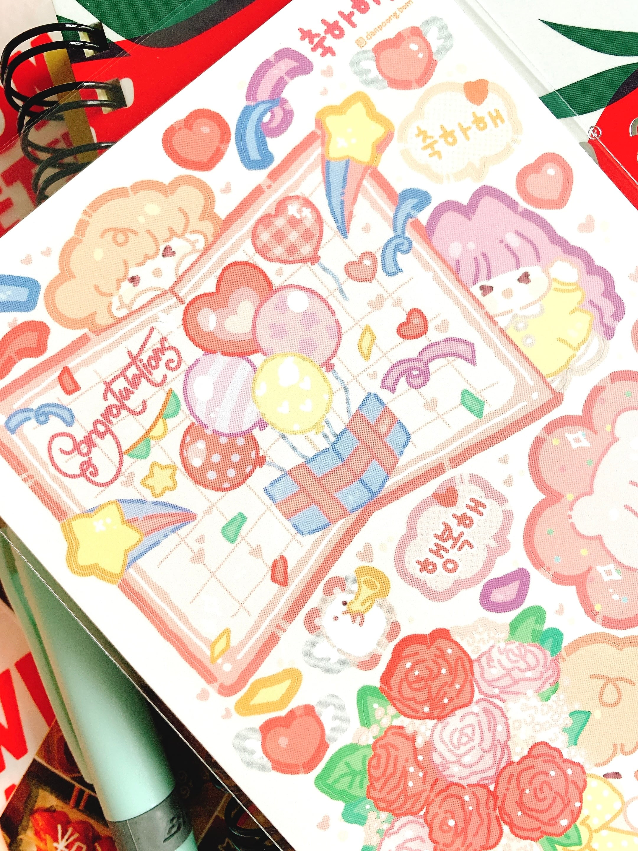 韓国作家シール【タンプン】おめでとう、 手帳デコ、推し活、ハンドメイド、イラスト、可愛い韓国系