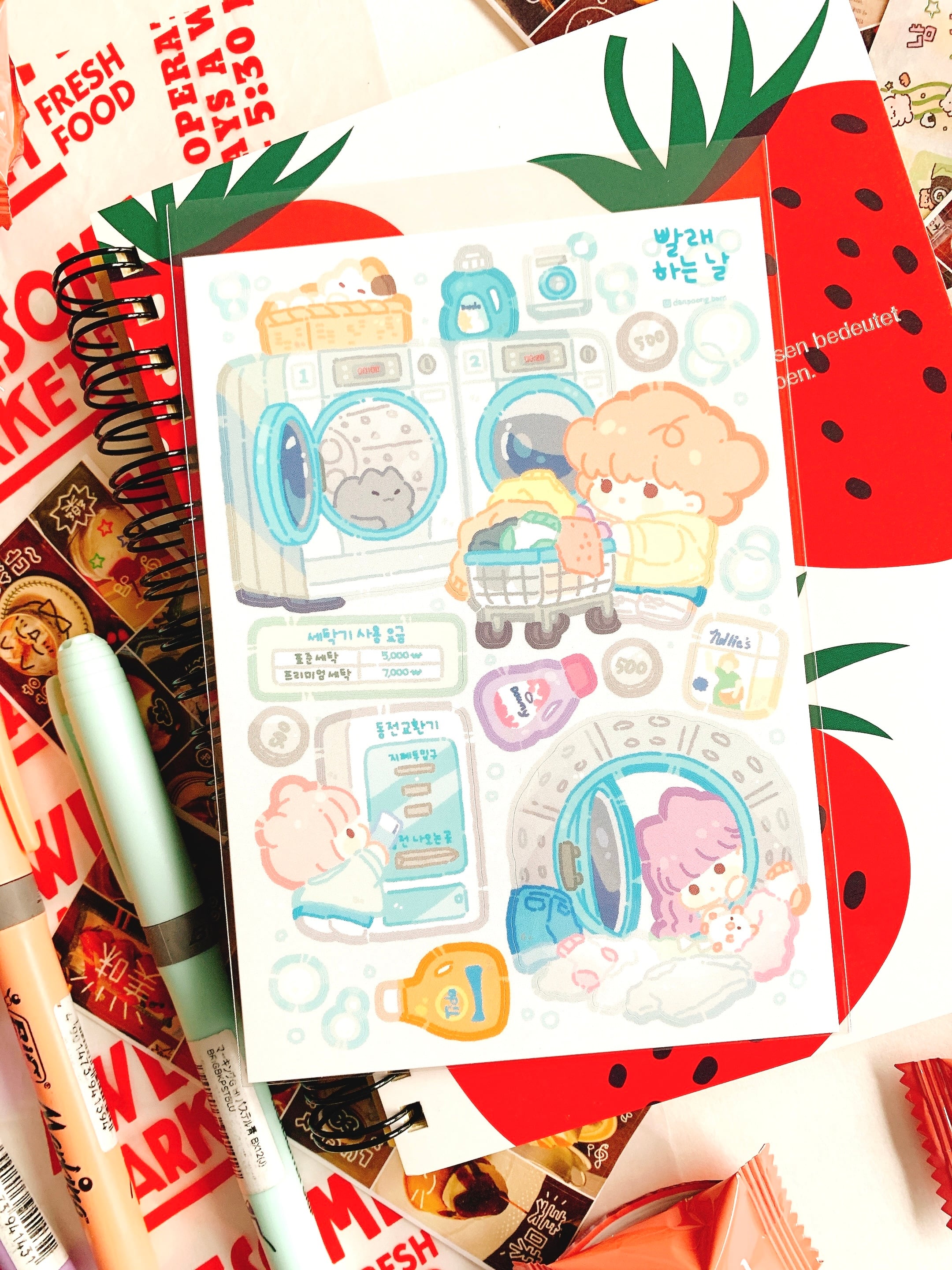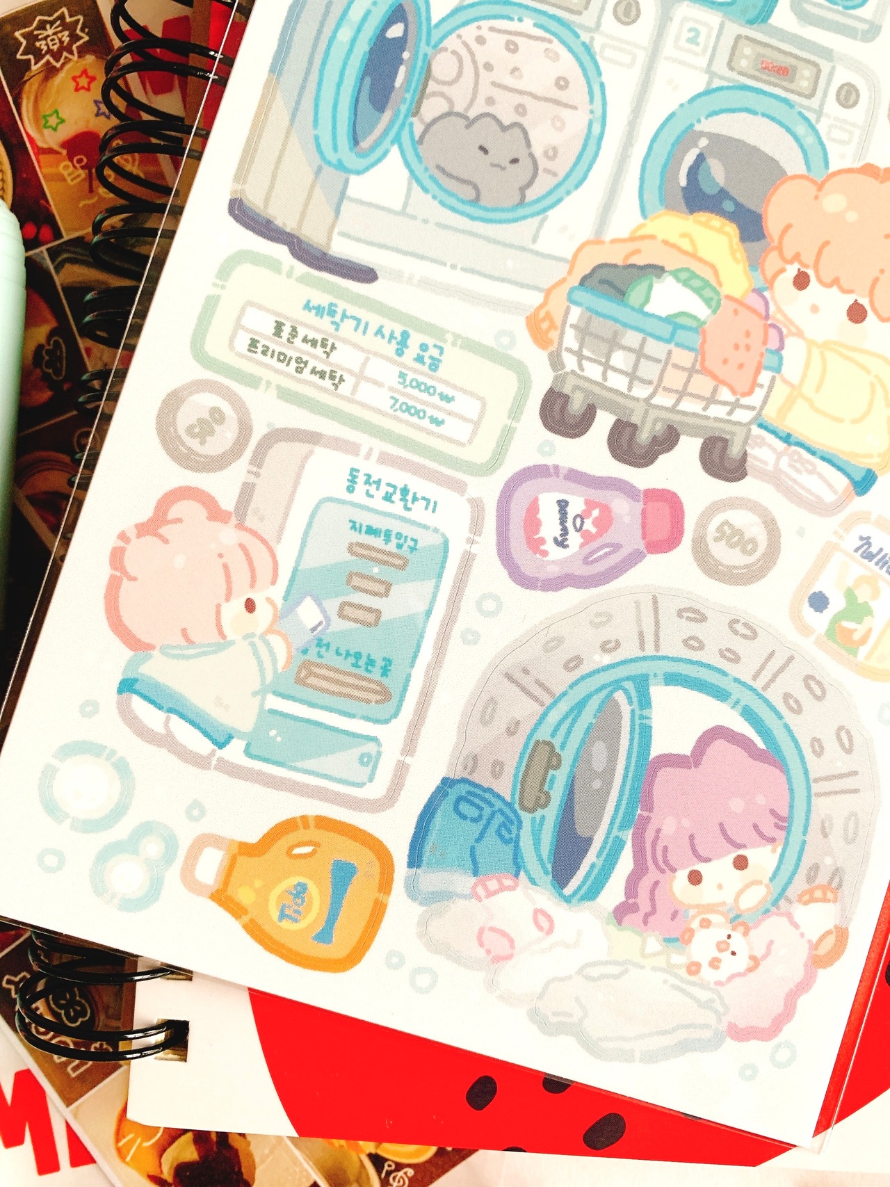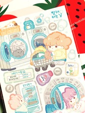 韓国作家シール【タンプン】洗濯日和、 手帳デコ、推し活、ハンドメイド、イラスト、可愛い韓国系