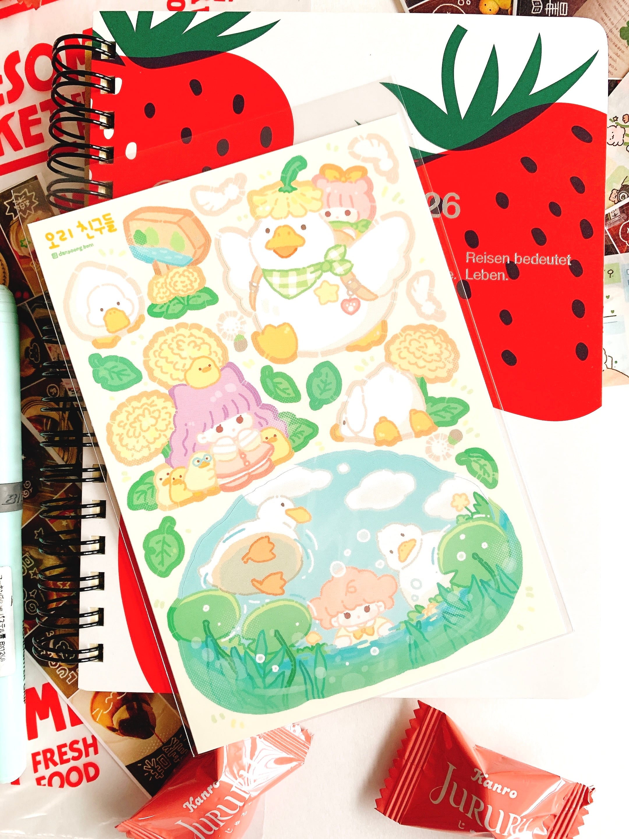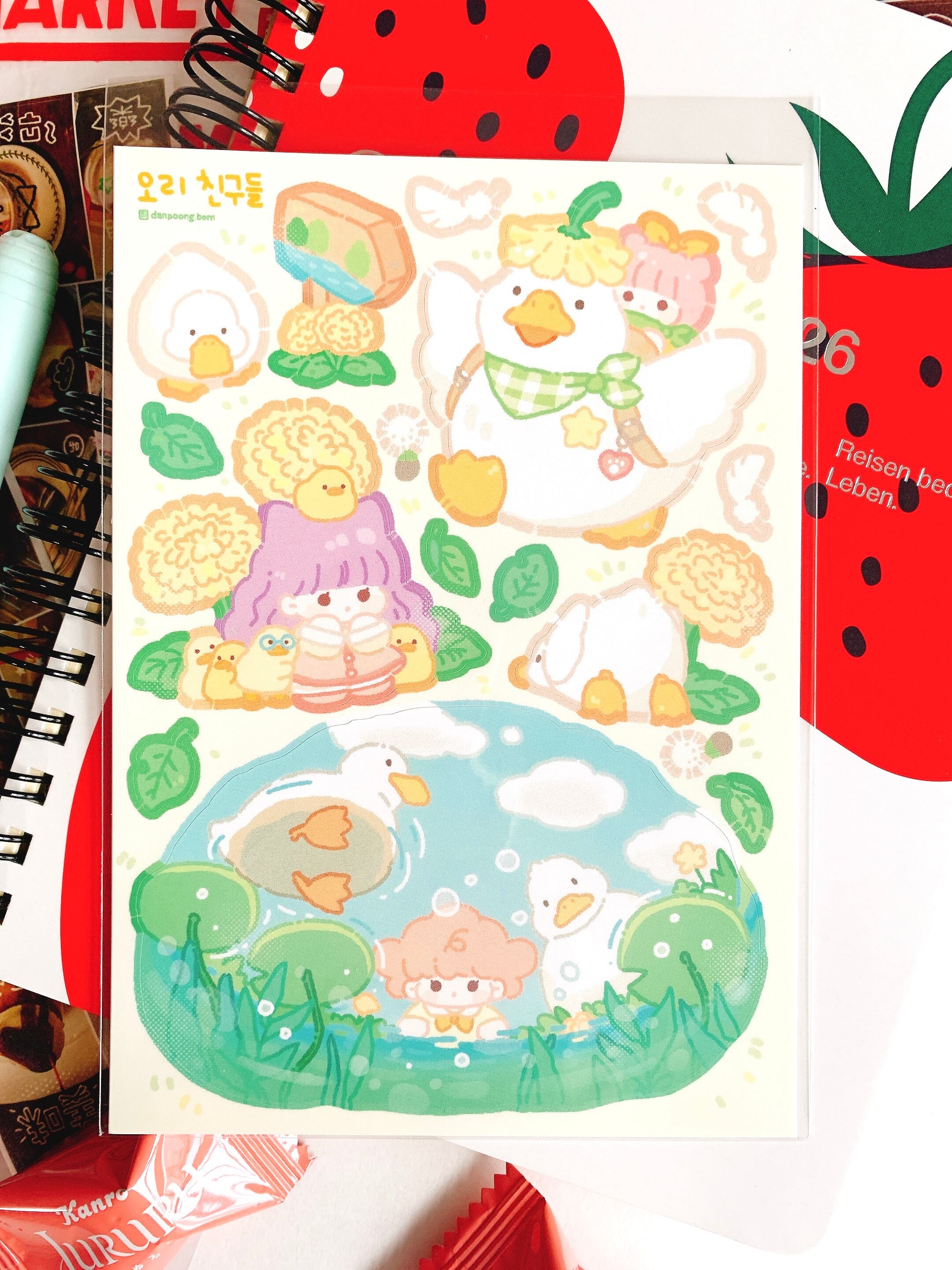 韓国作家シール【タンプン】アヒルの友たち、 手帳デコ、推し活、ハンドメイド、イラスト、可愛い韓国系