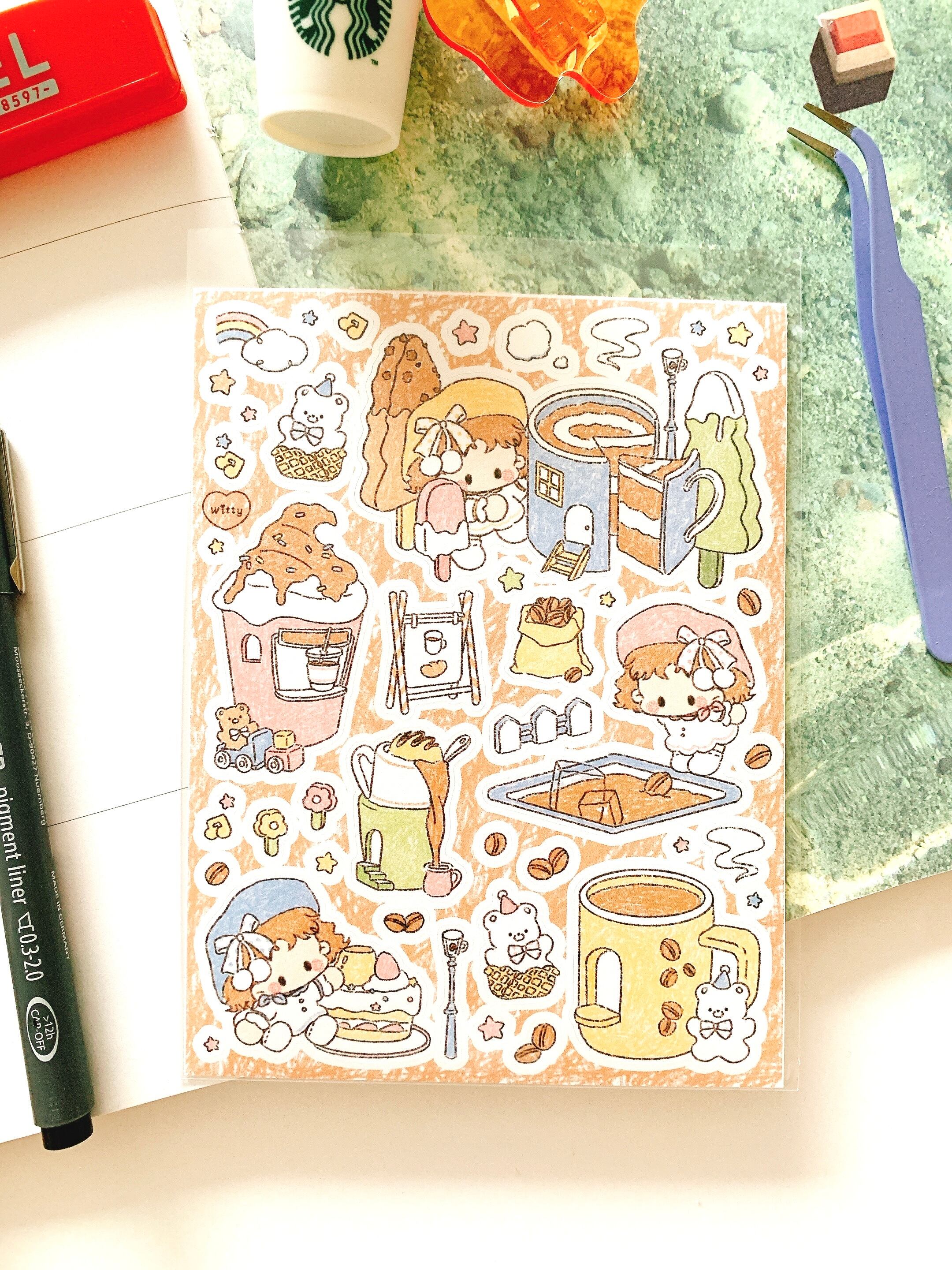 韓国作家、韓国シール【タンチュ】カフェヴィレッジ、 手帳デコ、推し活、ハンドメイド、イラスト、可愛い韓国系