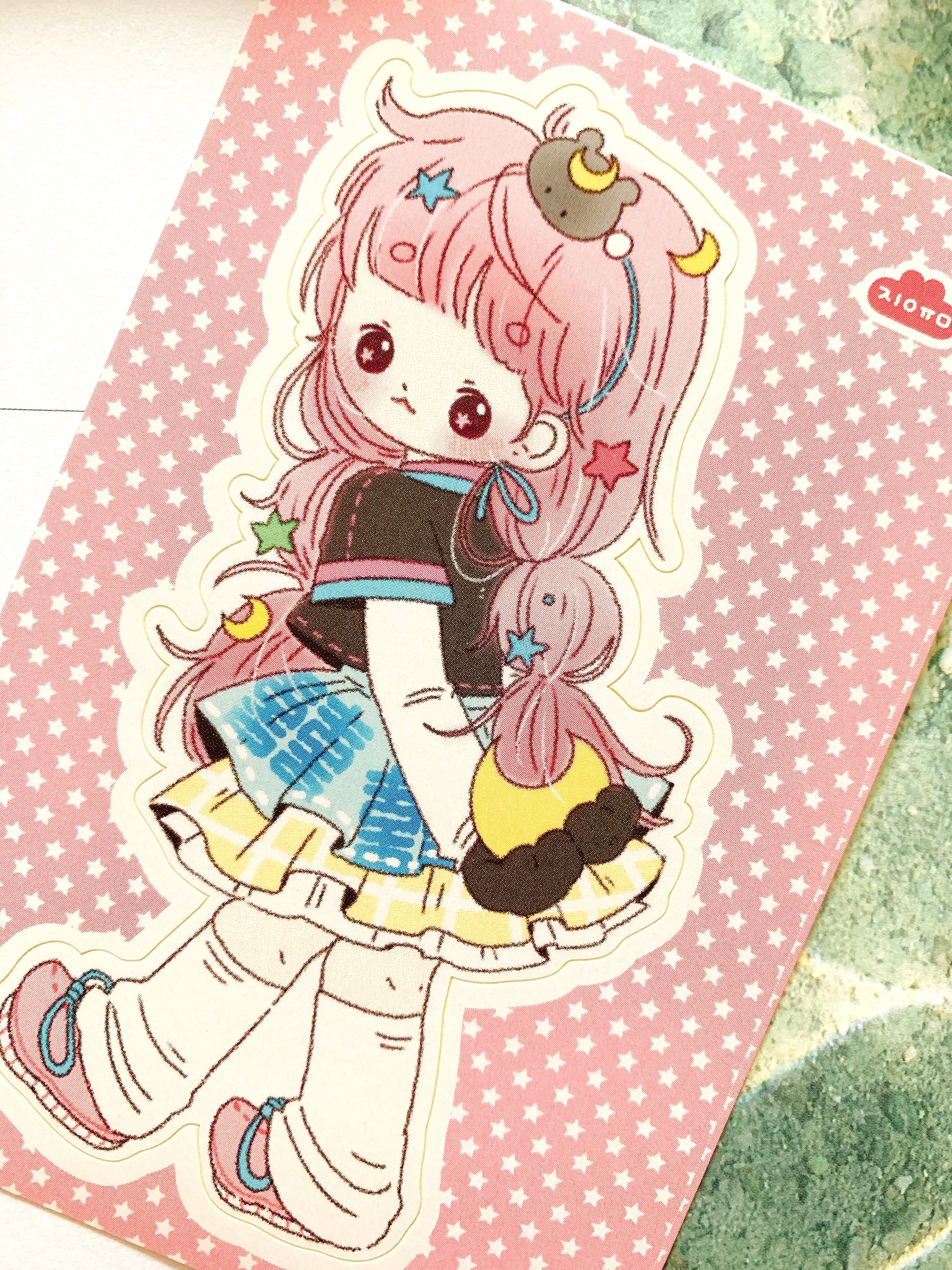 韓国作家、韓国シール【ジユム】☆半月クマ少女、ピンク、 手帳デコ、推し活、ハンドメイド、イラスト、可愛い韓国系