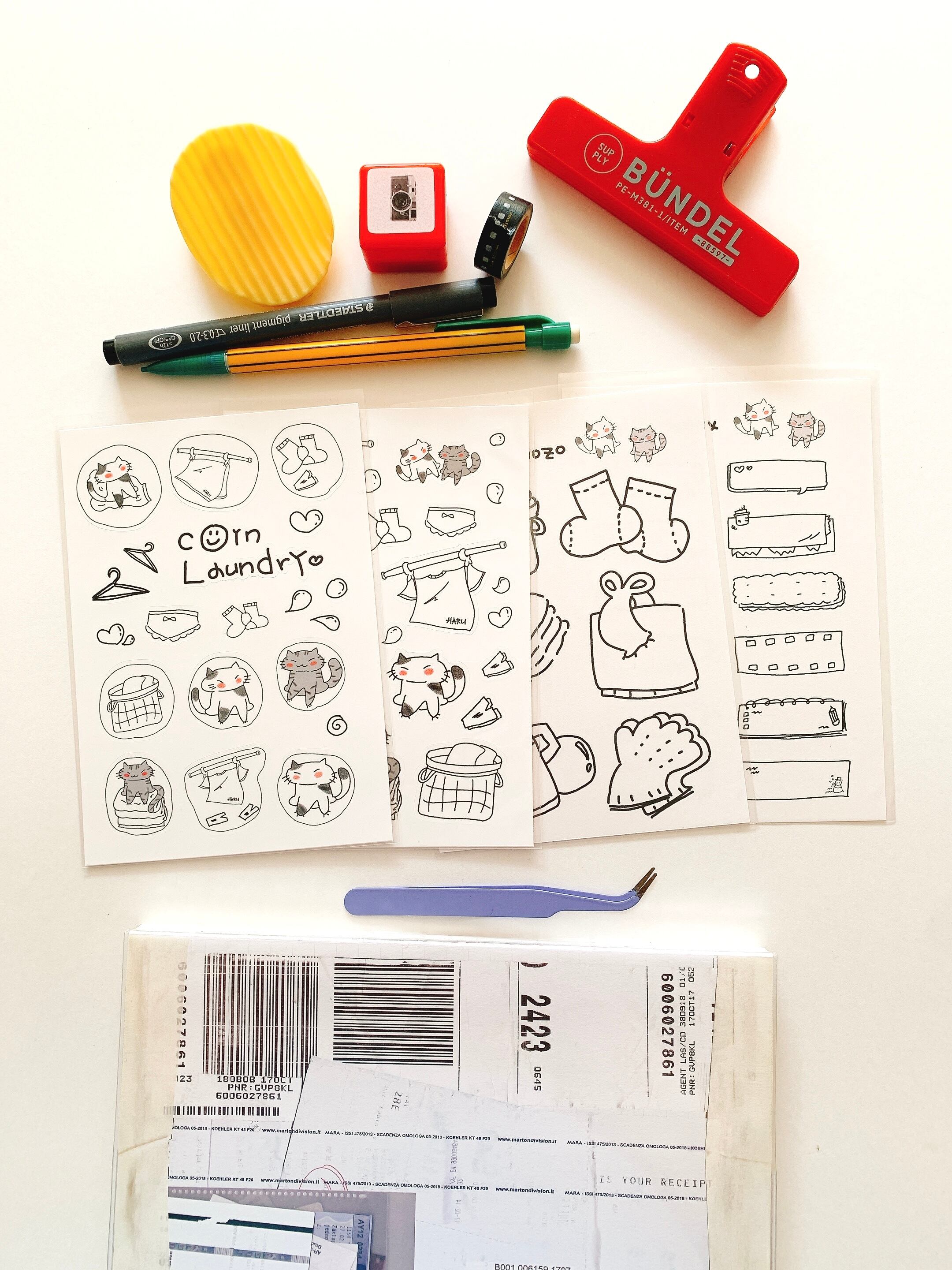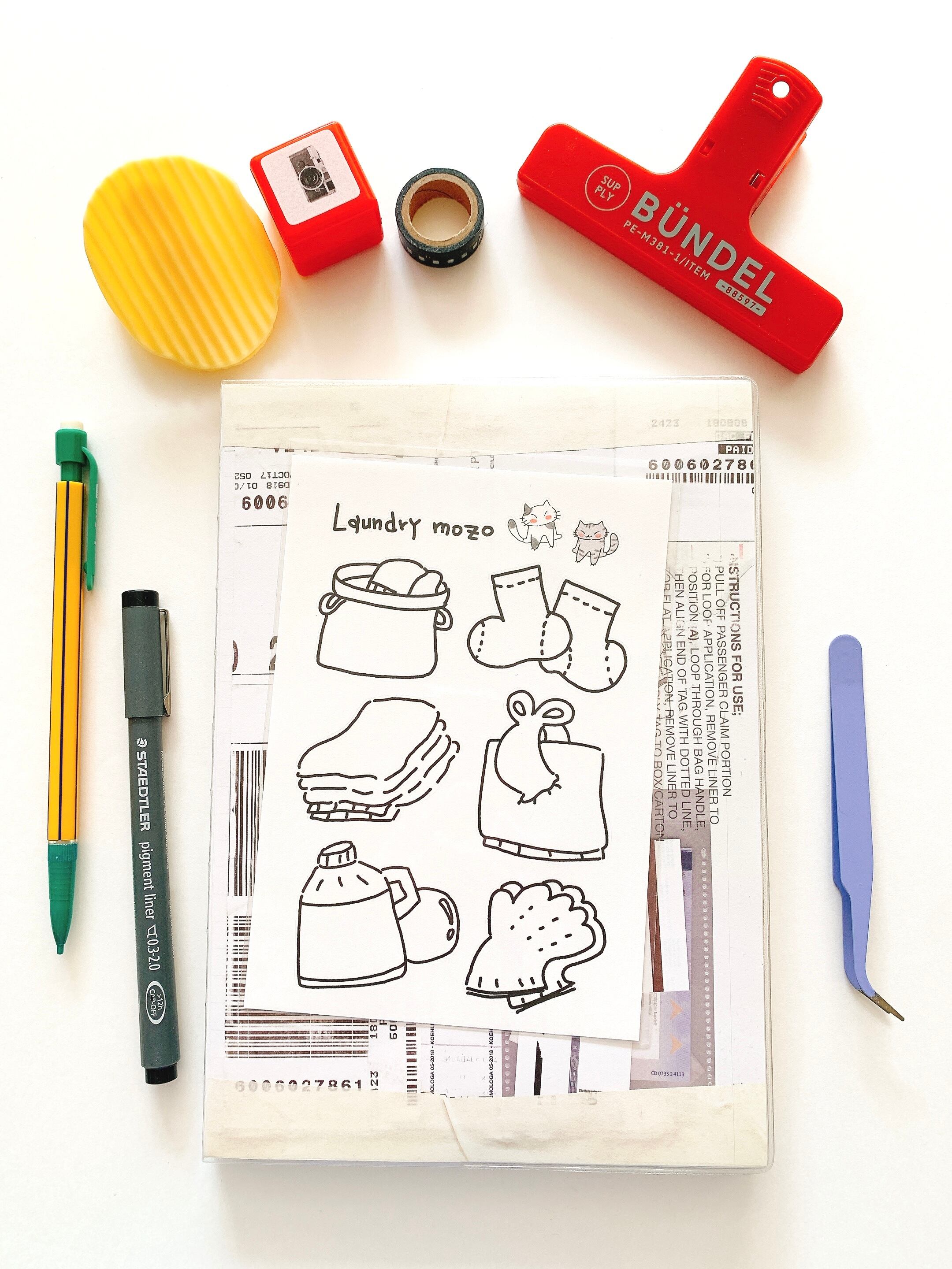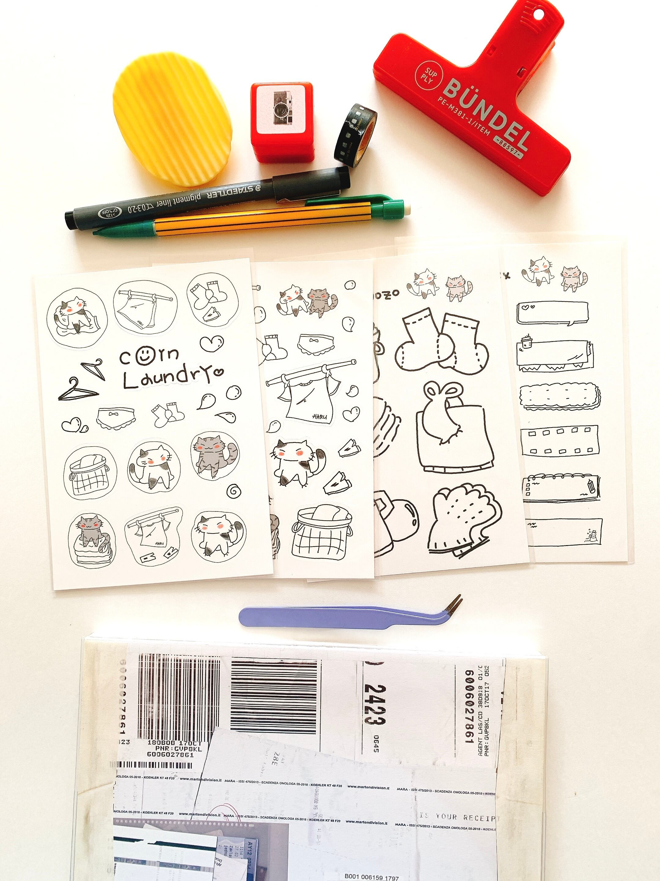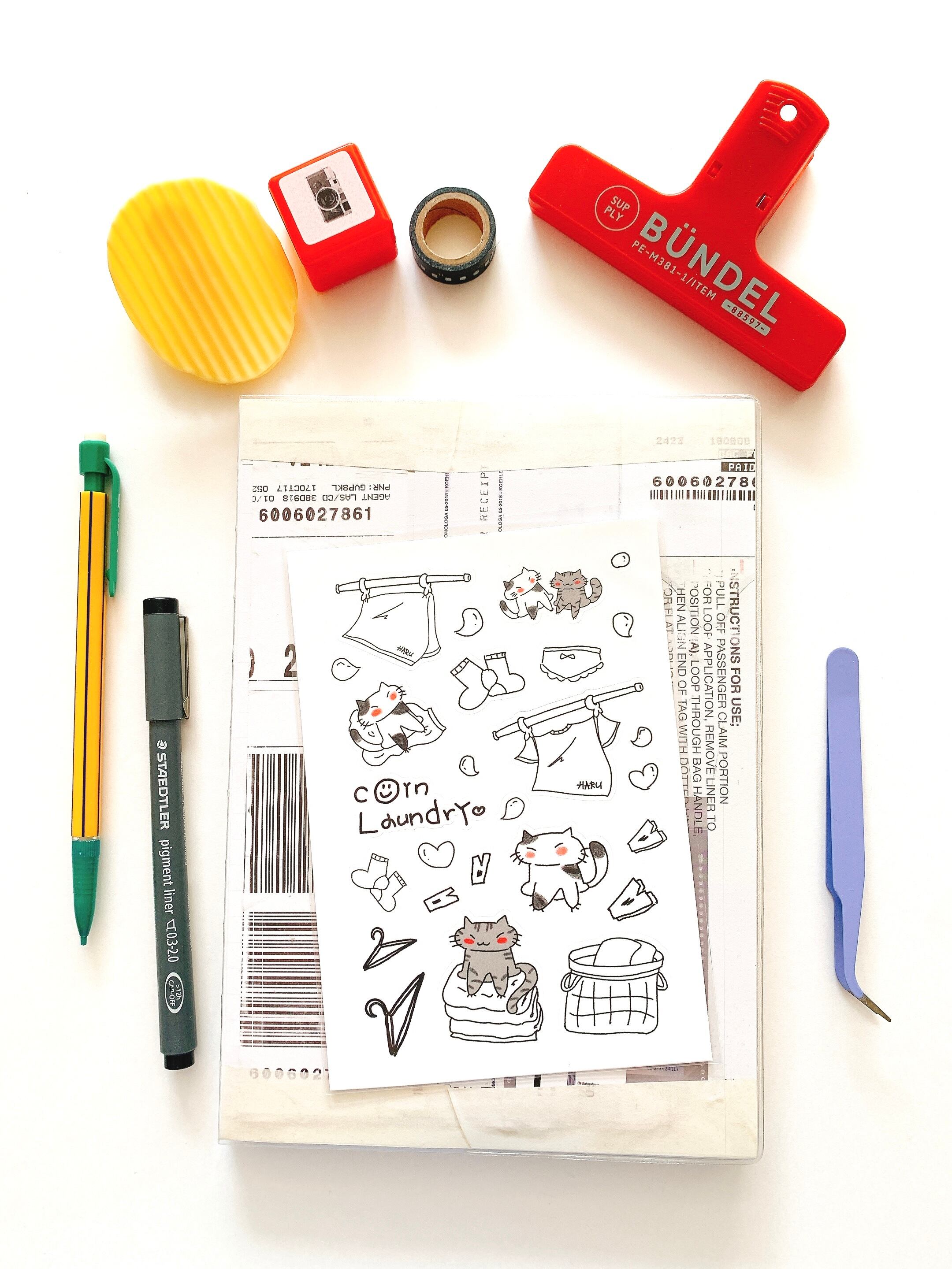 韓国作家、韓国シール、ハルドランオリジナル【Harudoran】バンウリのコインランドリーセット、 手帳デコ、推し活、ハンドメイド、イラスト、可愛い韓国系