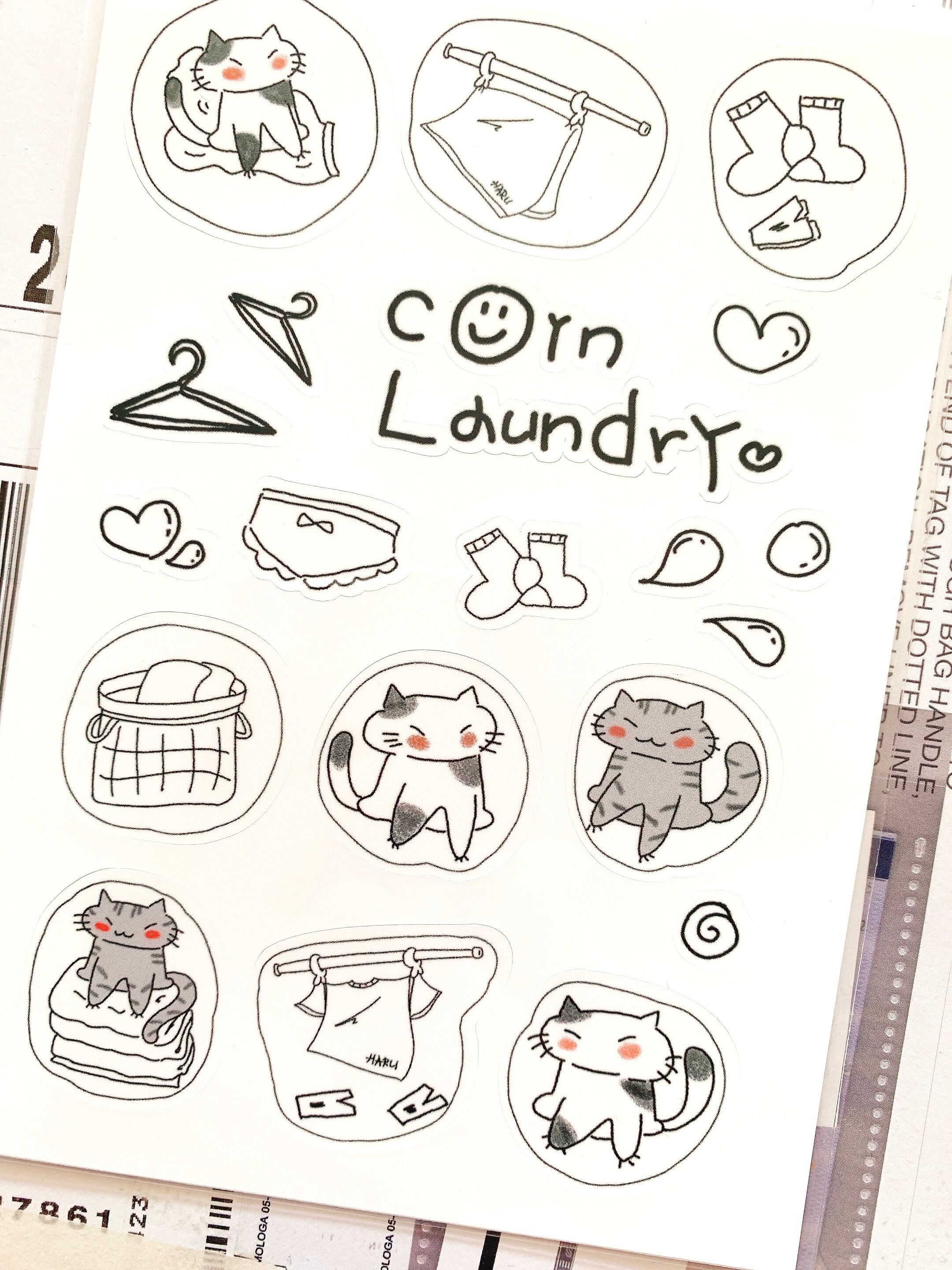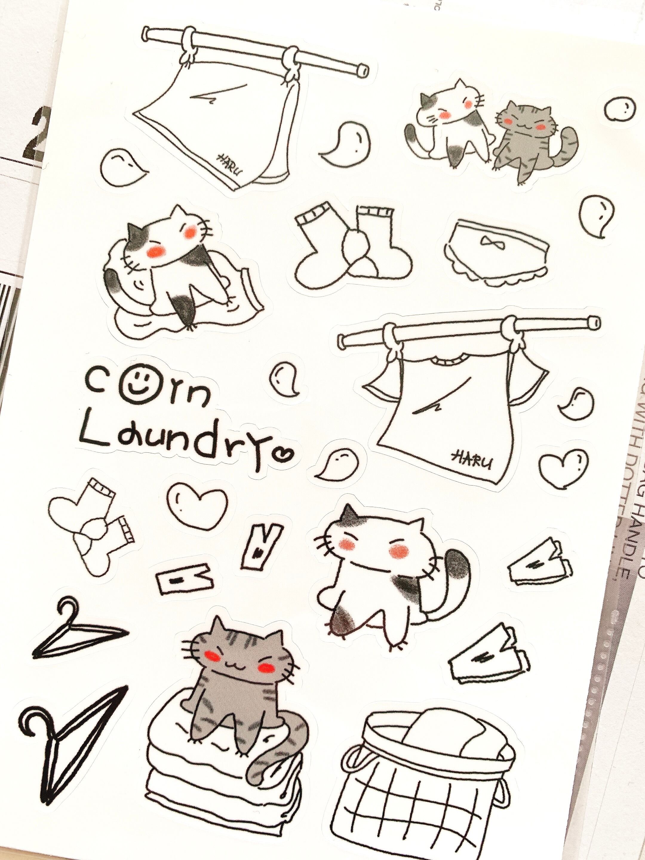 韓国作家、韓国シール、ハルドランオリジナル【Harudoran】バンウリのコインランドリーセット、