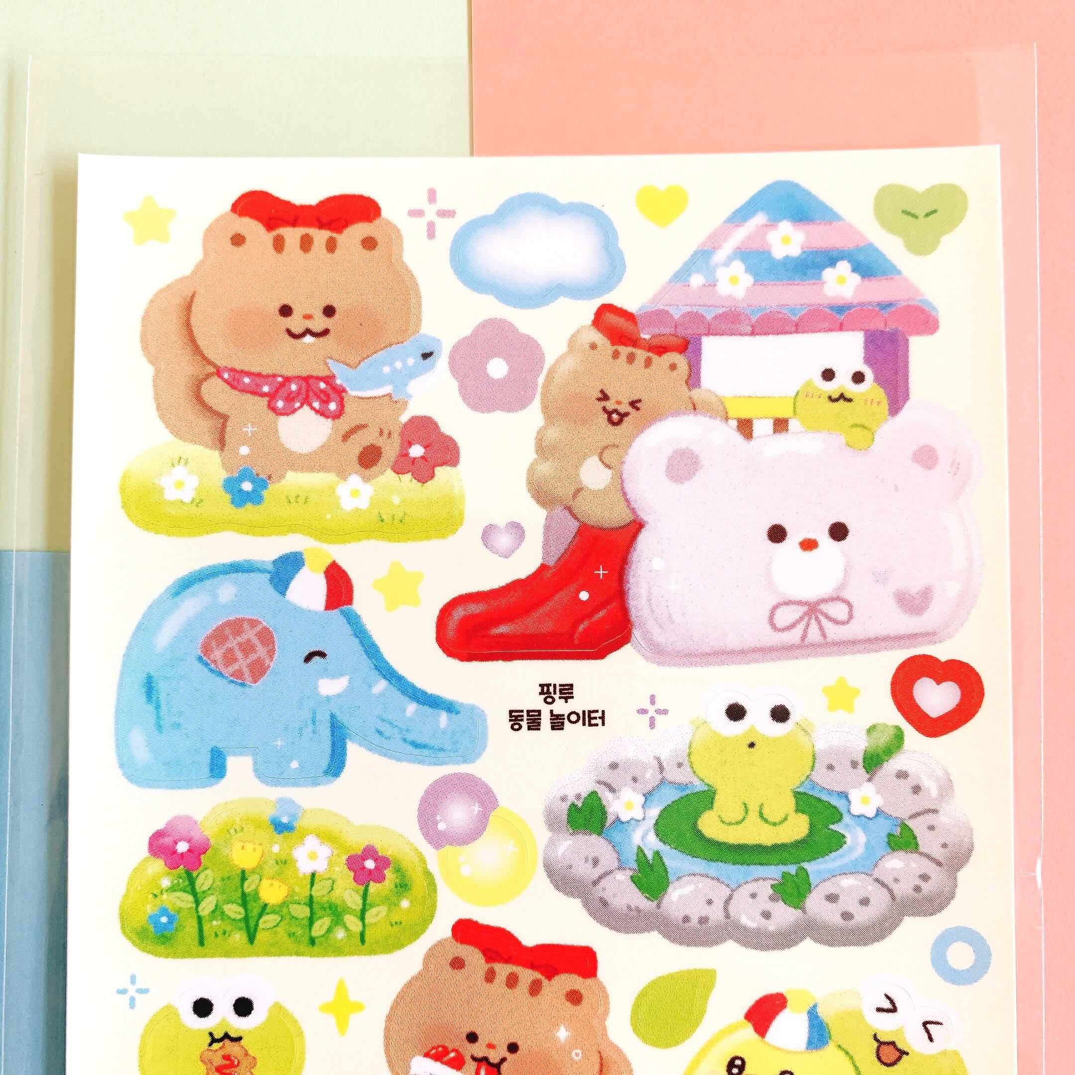 手帳デコ、文房具、韓国シール、ステッカー 【ピンル】動物遊び場