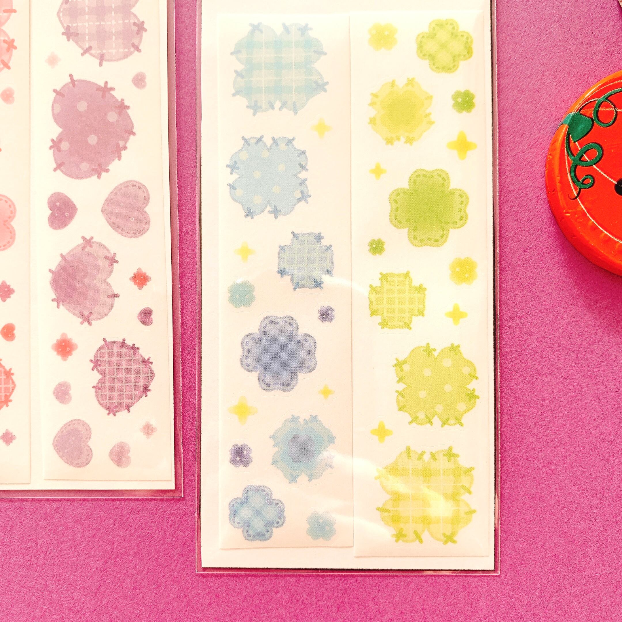韓国シール【マスキングシール】ジユムのペッチワークシリーズ ハートとクローバー、 手帳デコ、文房具、ステッカー、可愛いシール