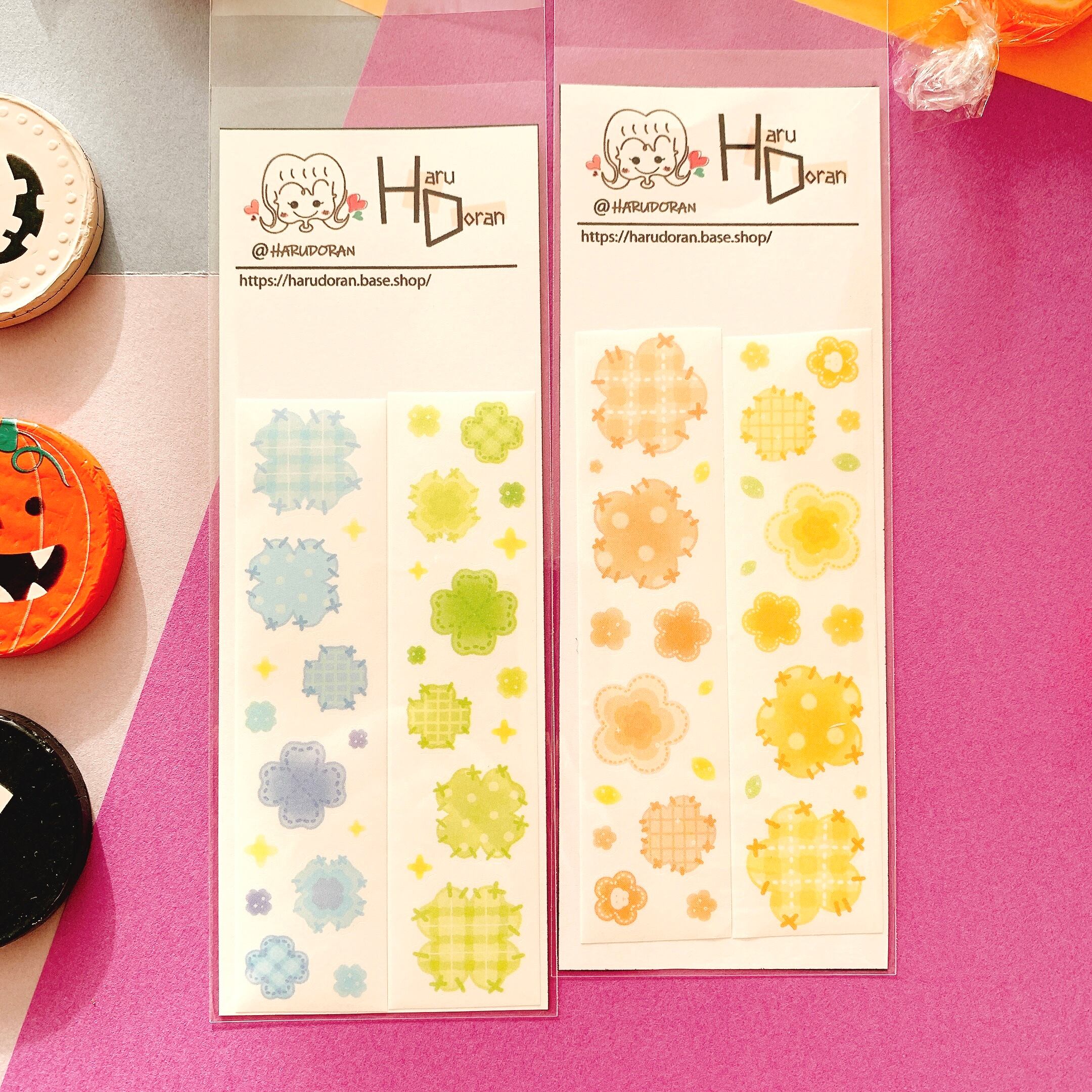 韓国シール【マスキングシール】ジユムのペッチワークシリーズ フラワーとクローバー 、手帳デコ、文房具、ステッカー、可愛いシール