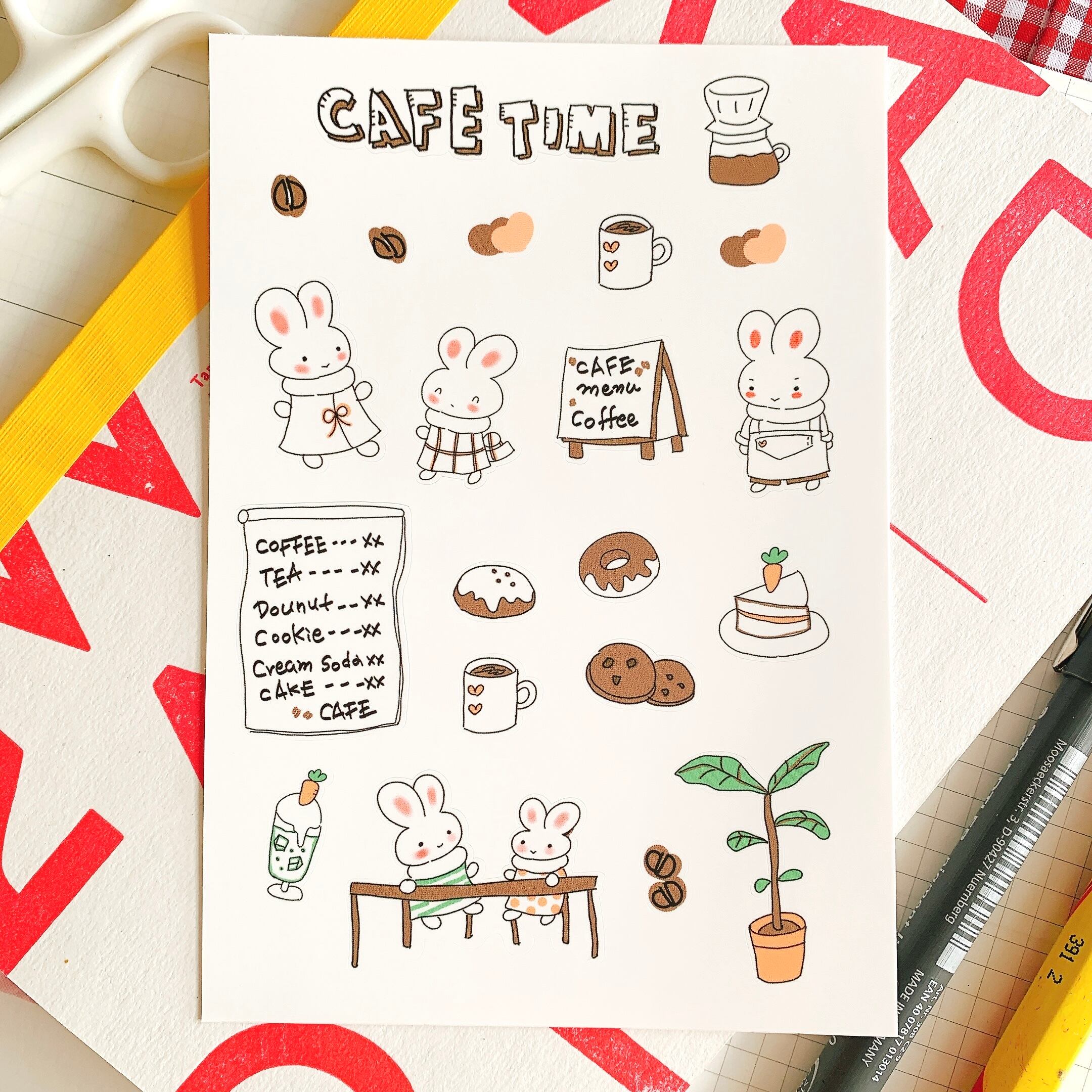 韓国作家、韓国シール、ハルドランオリジナル【Harudoran】カフェタイム、 手帳デコ、イラスト作家、ハンドメイド文房具、オリジナルシール