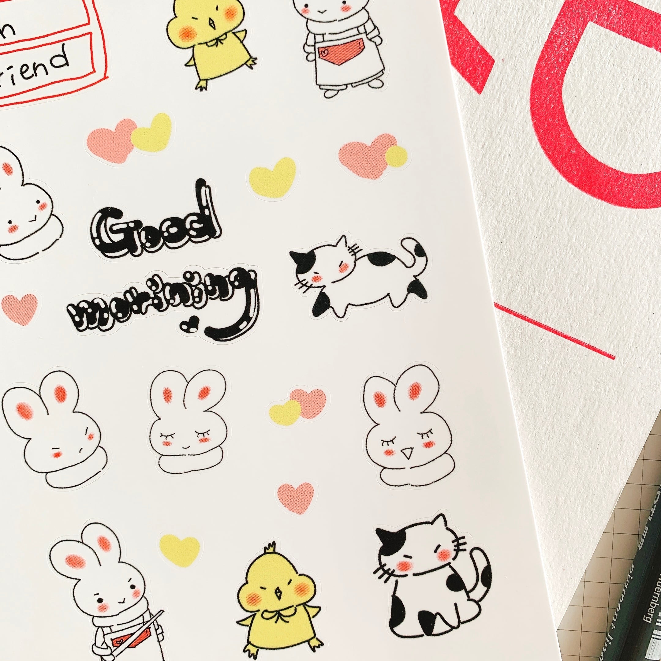 今回のシールは韓国シール仕様、描かれたすべてのデザインが自由に使えるものです。