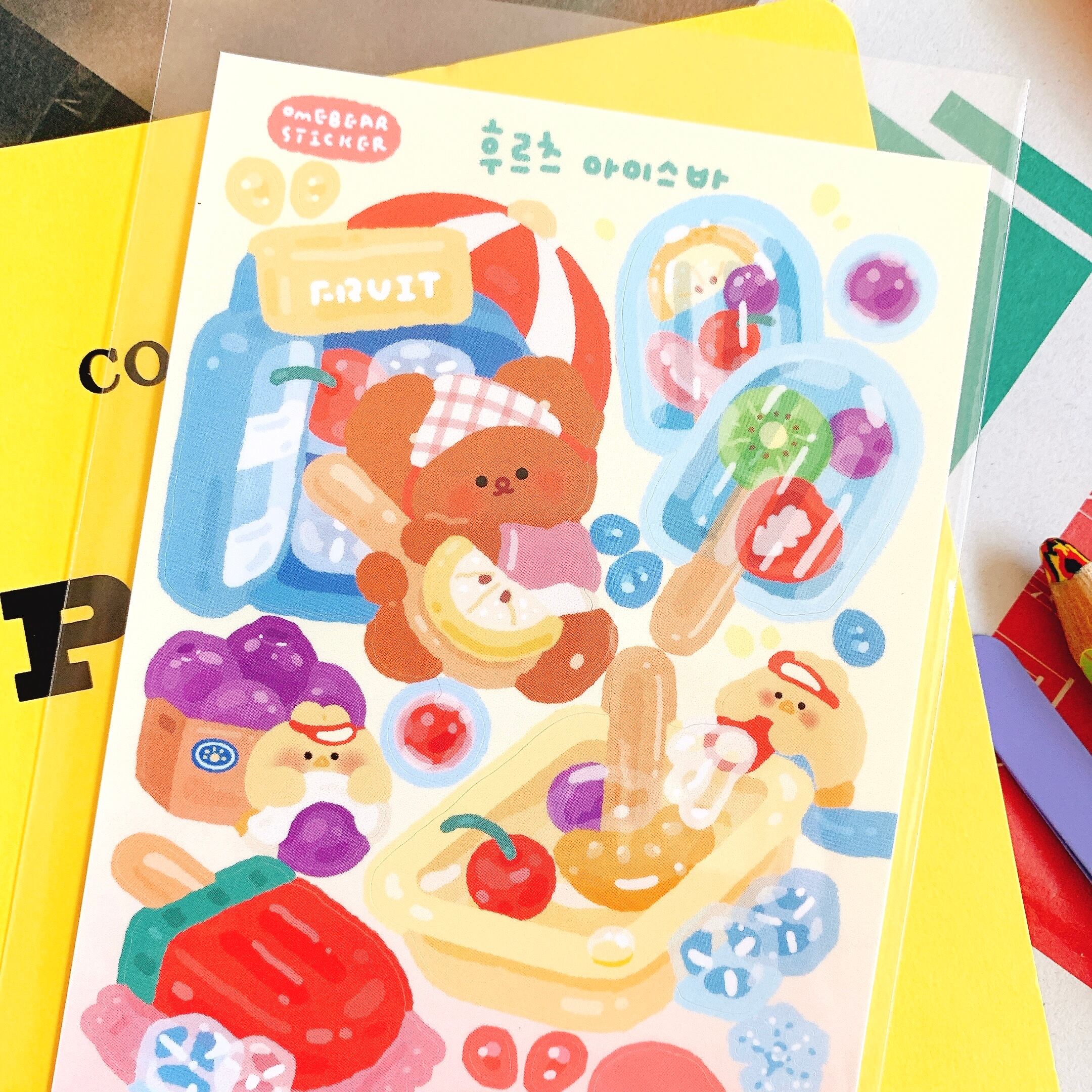 韓国作家、韓国シール【オメベア】フルーツアイス、 手帳デコ、イラスト作家、ハンドメイド文房具、オリジナルシール
